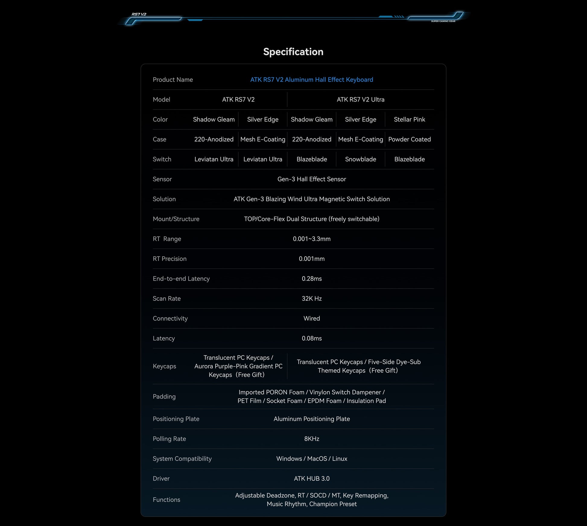 ATK RS7 V2 Aluminum Hall Effect Keyboard