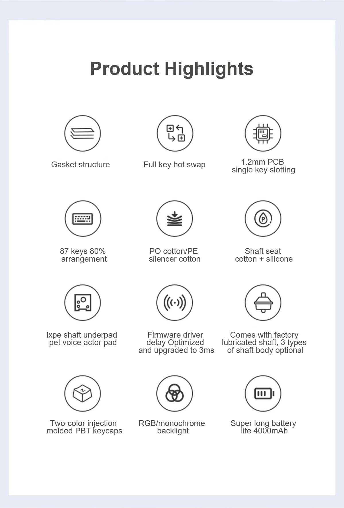 Wireless Tri-Mode (BT/2.4G/Wired), Gasket Structure, Fully Hot-Swappable Keys, 80% Layout, Ideal for Gaming, Esports, and Office Use