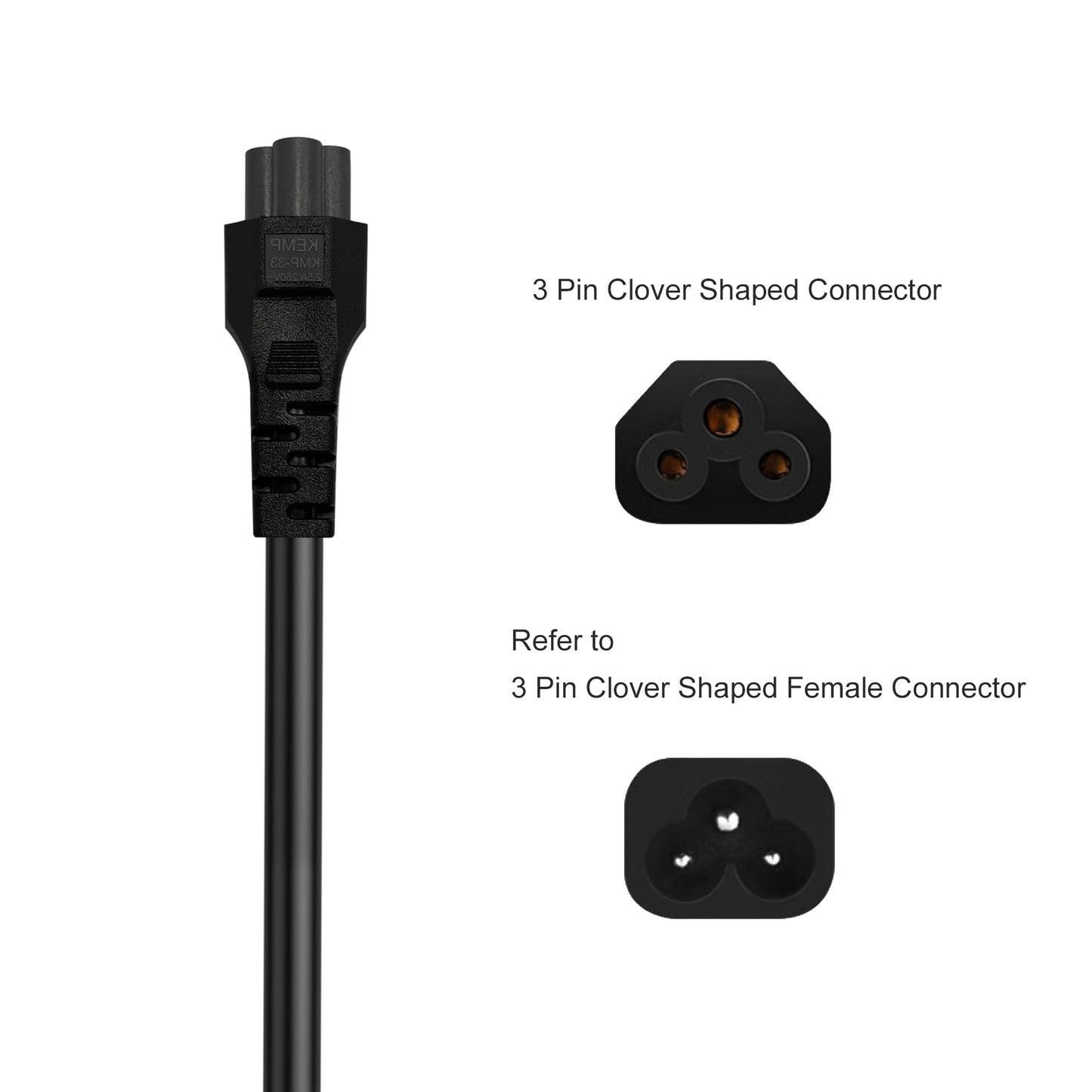 1) Connectors: 3 Pin AU Male to Female IEC-C5 (3*0.75mm²)