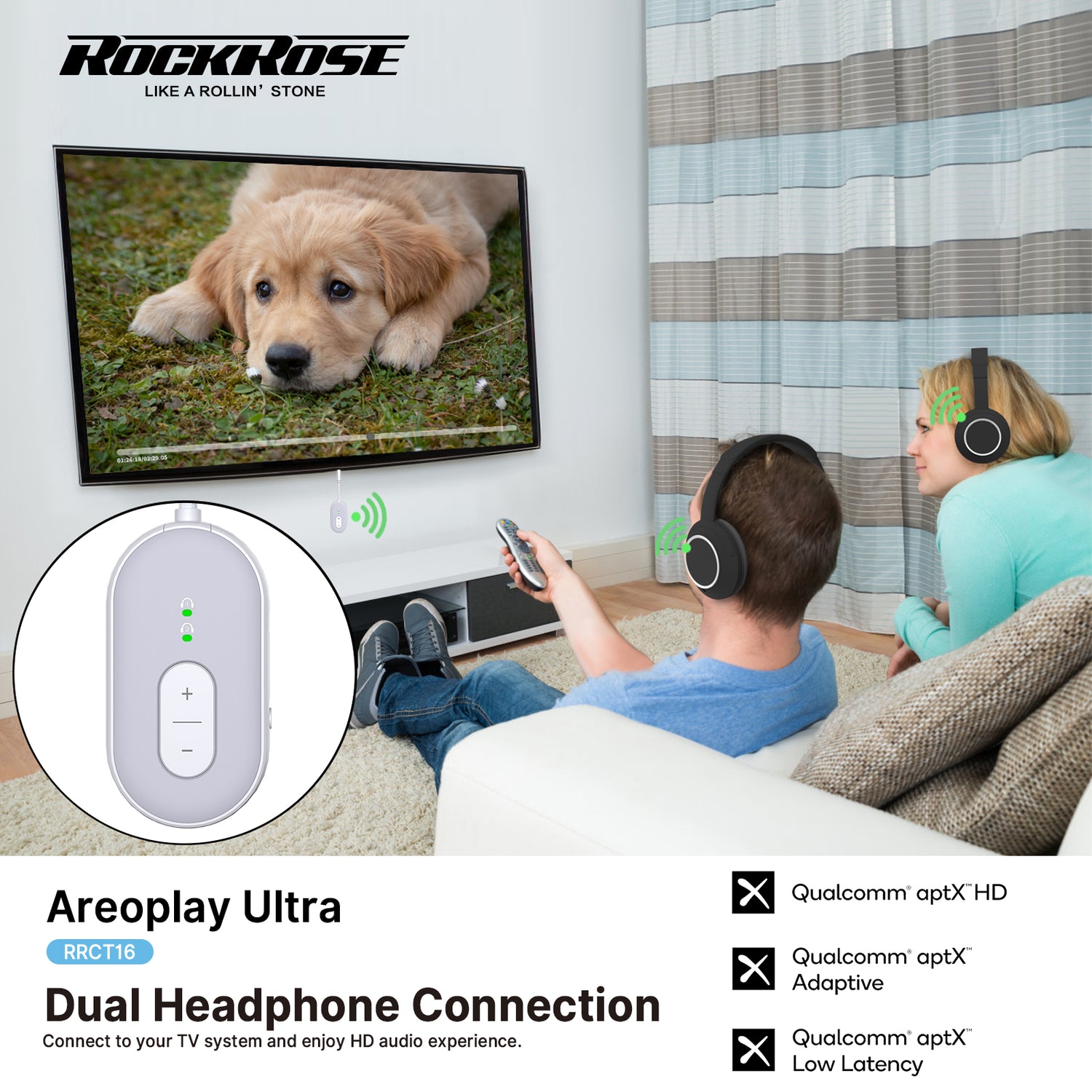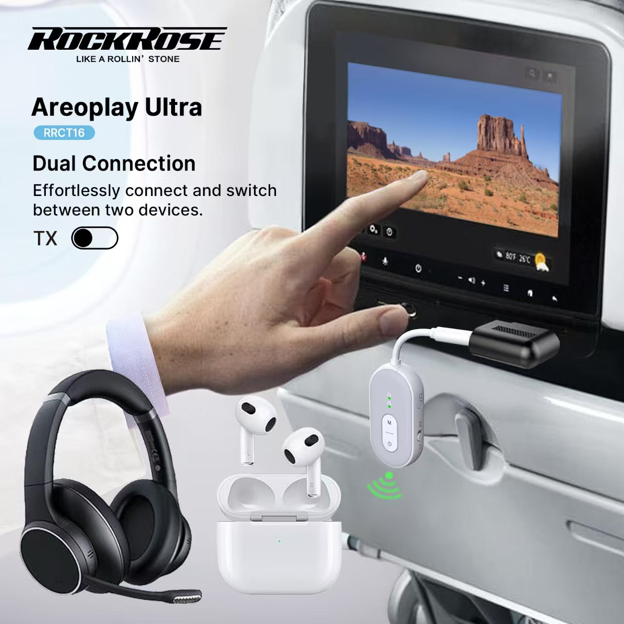 Rockrose Aeroplay Ultra 2-in-1 Bluetooth Audio Transmitter / Receiver Dual Pairs with Two Bluetooth Devices