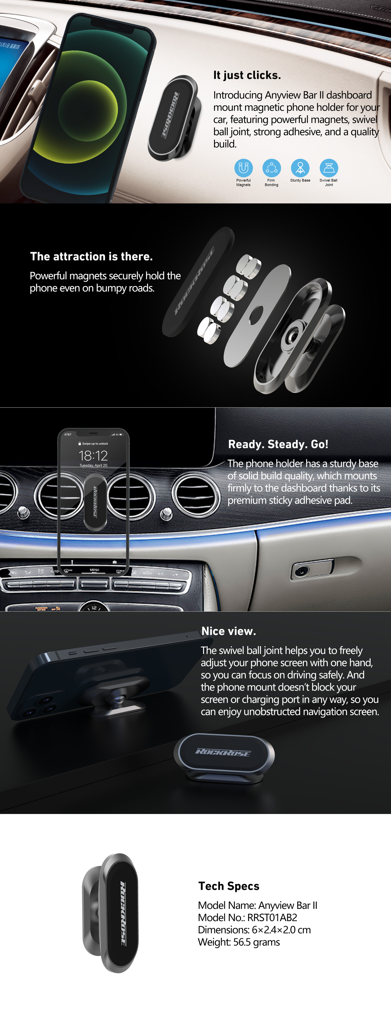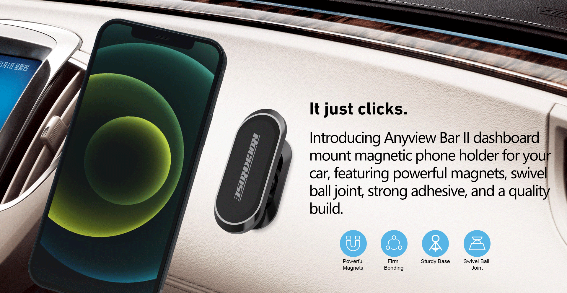 Rockrose Anyview Bar II Car Dashboard Mount Magnetic Phone Holder