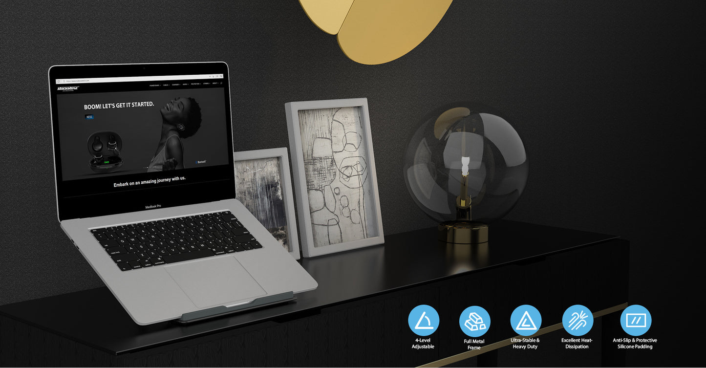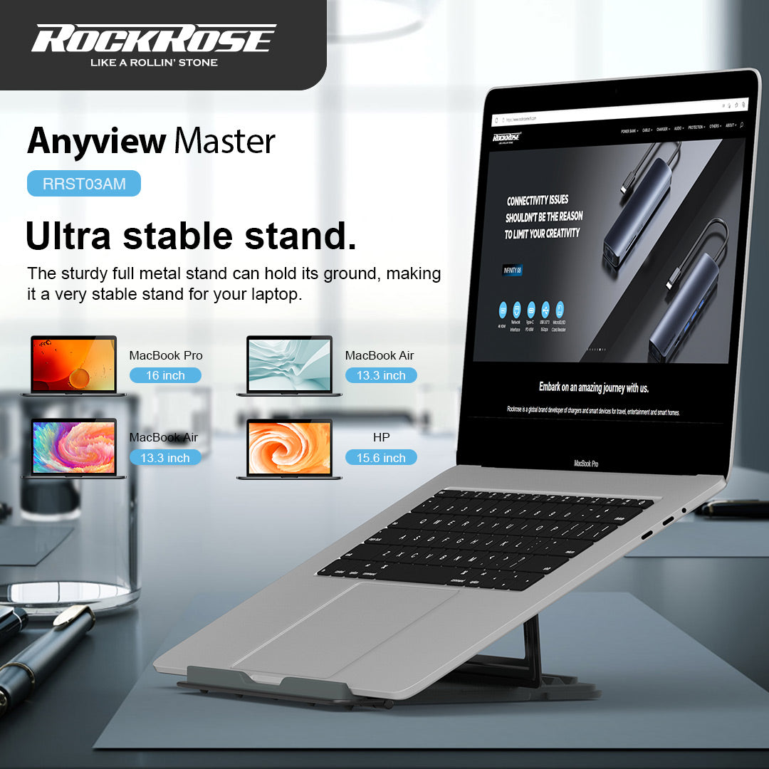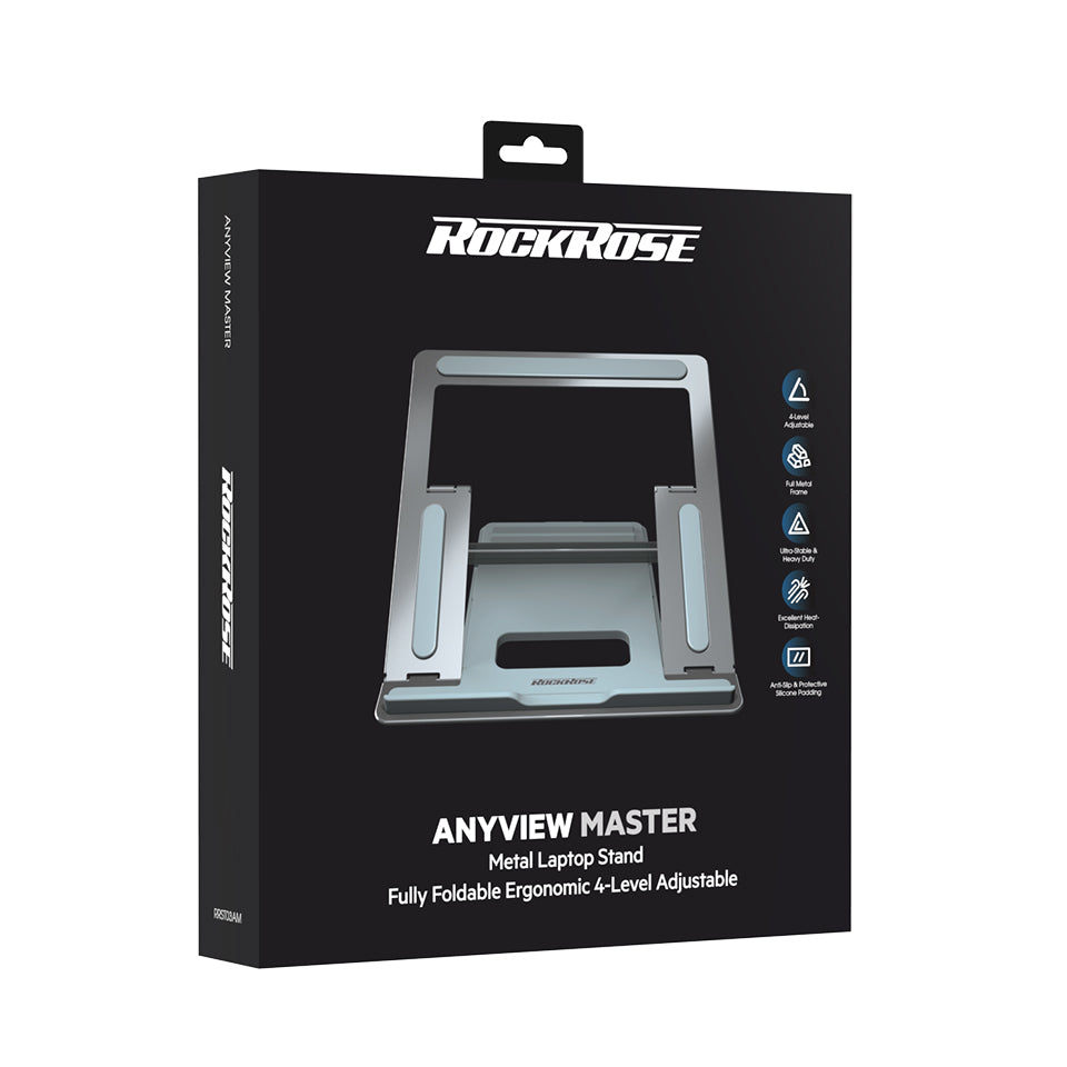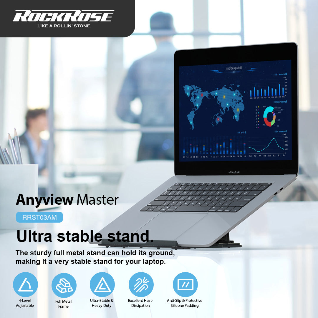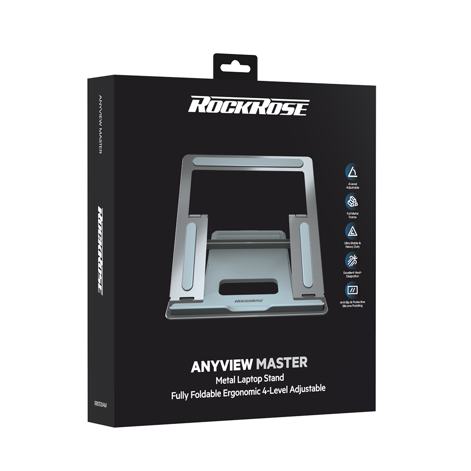 Rockrose Anyview Master Fully Foldable Ergonomic 4-Level Adjustable Metal Laptop Stand