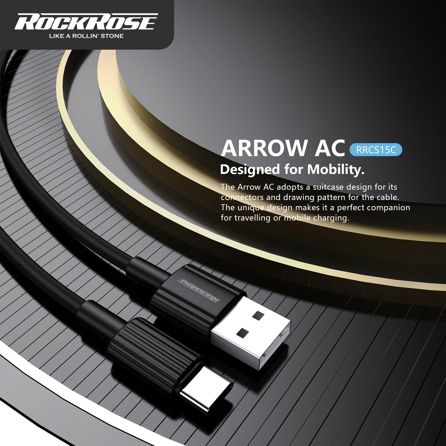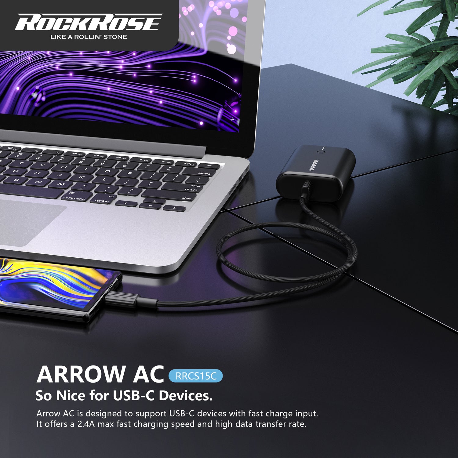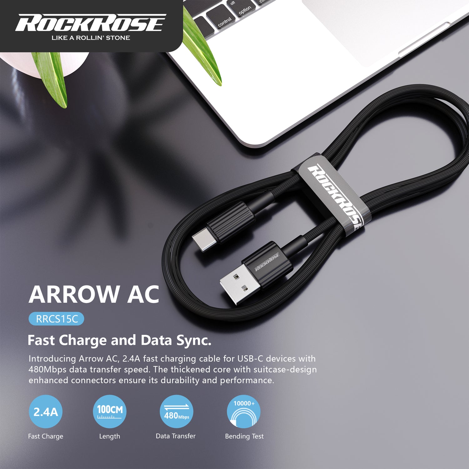 Rockrose Arrow AC 2.4A 1m USB-C Charge & Sync Cable