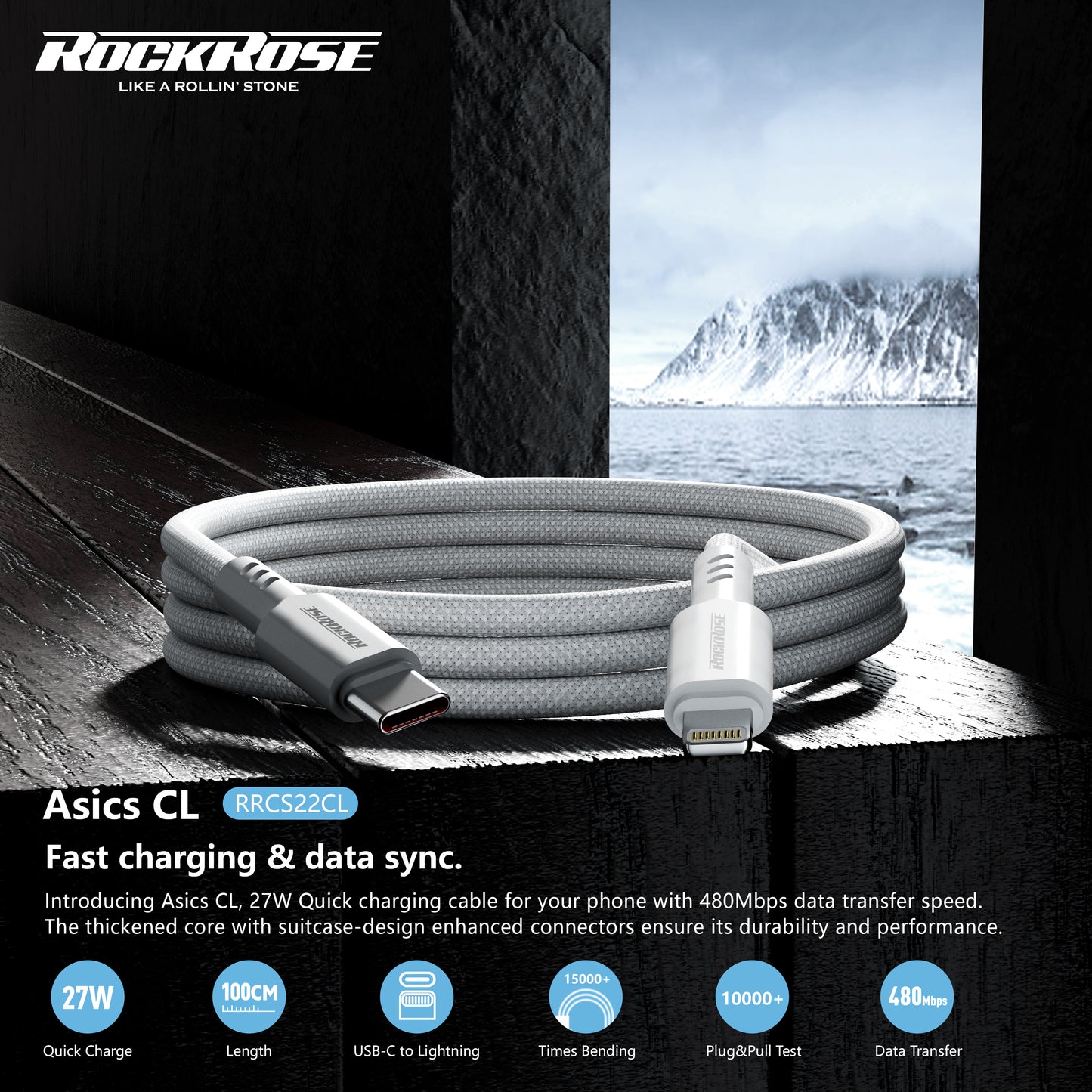Rockrose Ascis CL 27W USB-C to Lightning Fast Charging & Data Sync Cable TPE Connector with Nylon Braided Cord