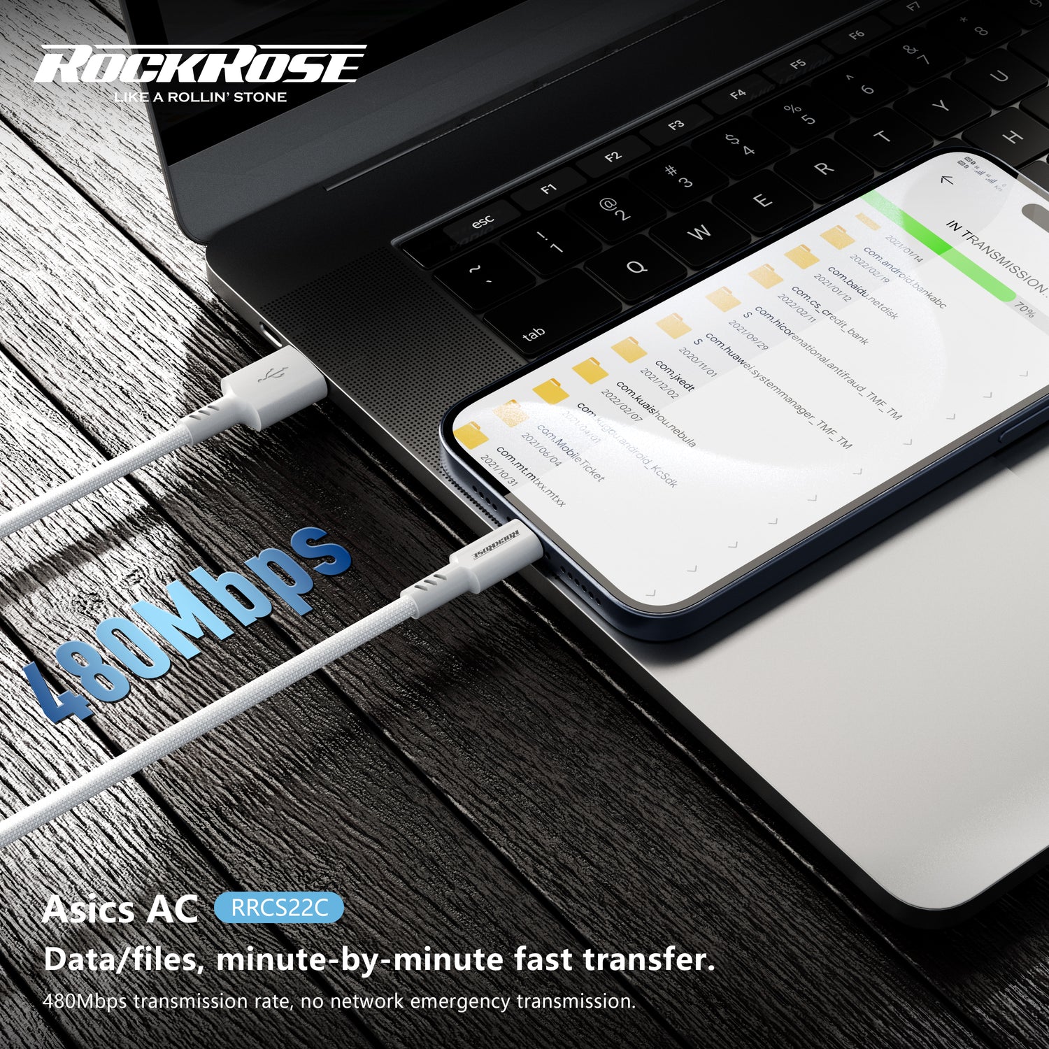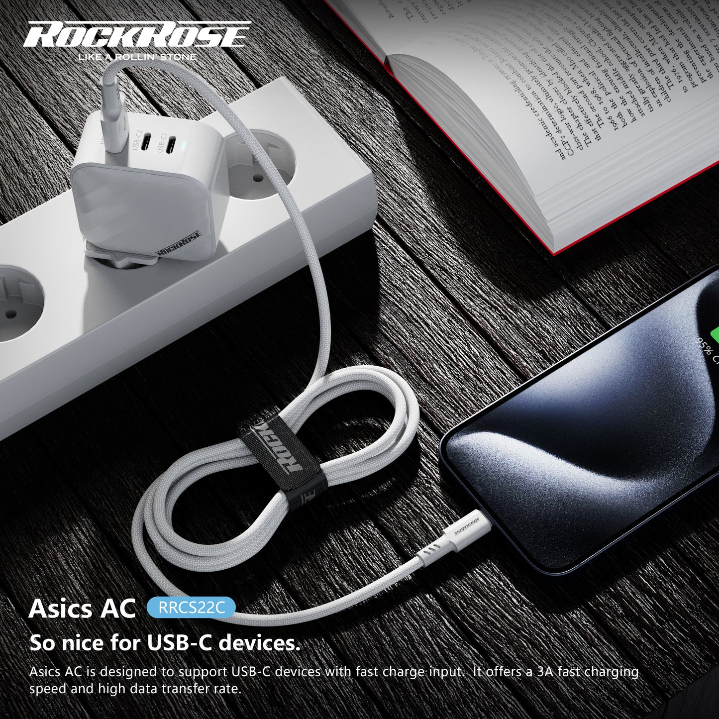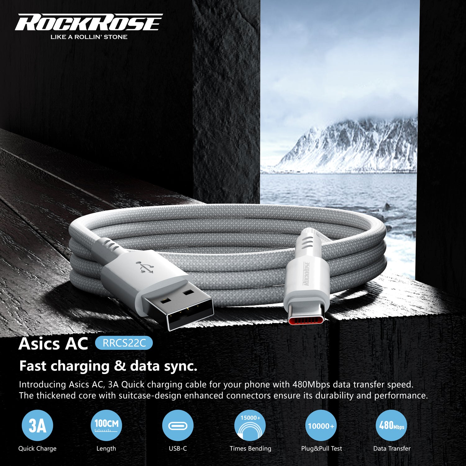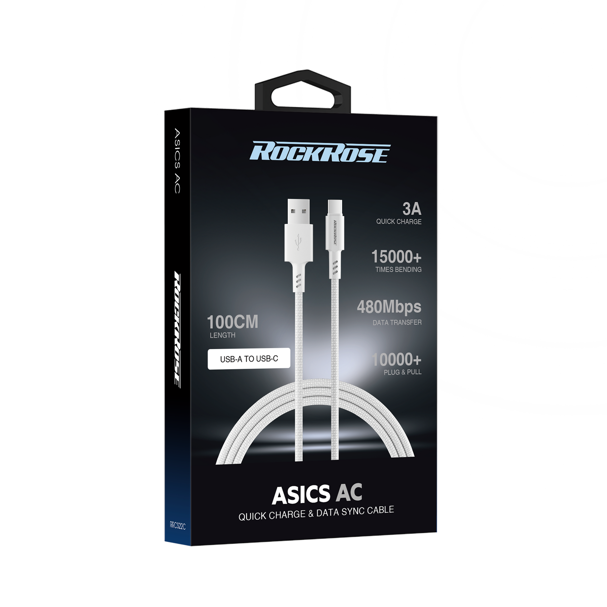 Rockrose Asics AC 3A USB-A to USB-C Fast Charging & Data Sync Cable TPE Connector with Nylon Braided Cord