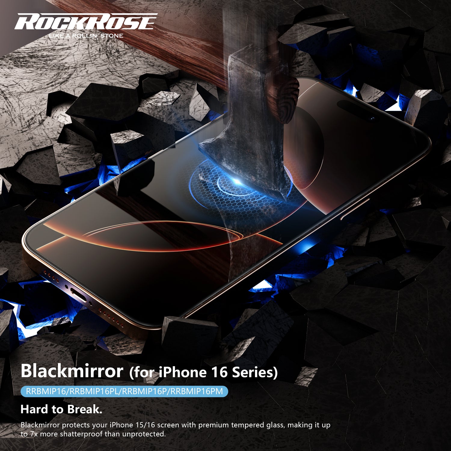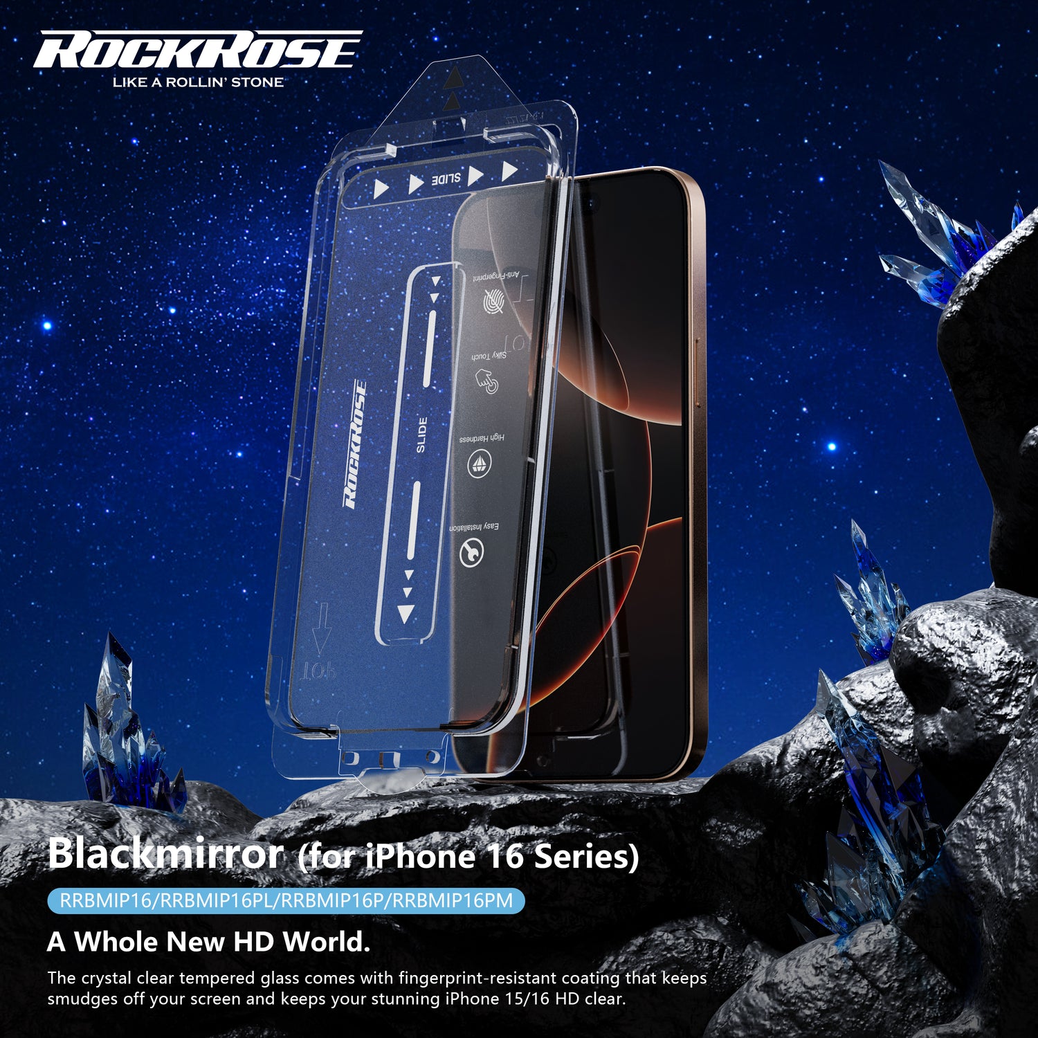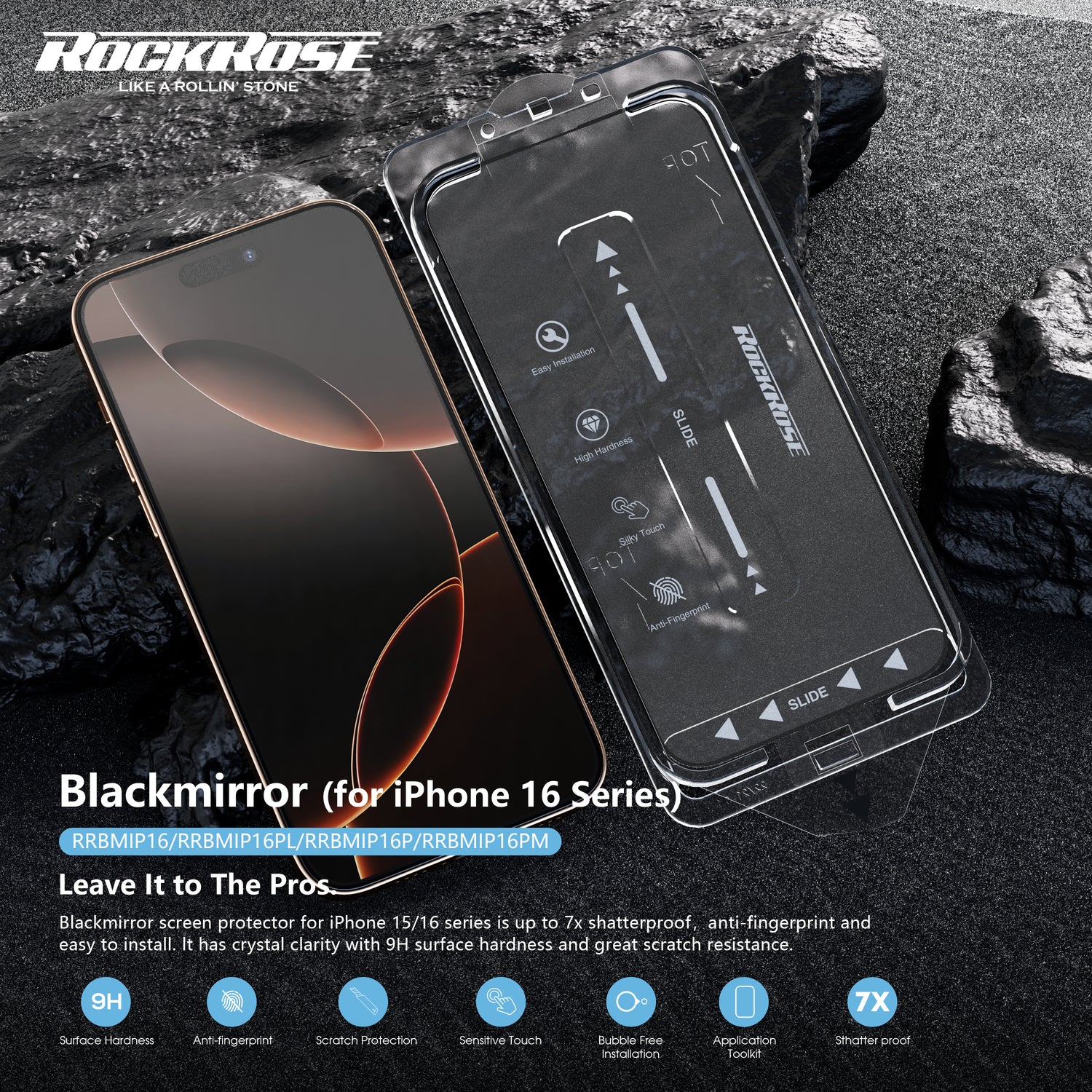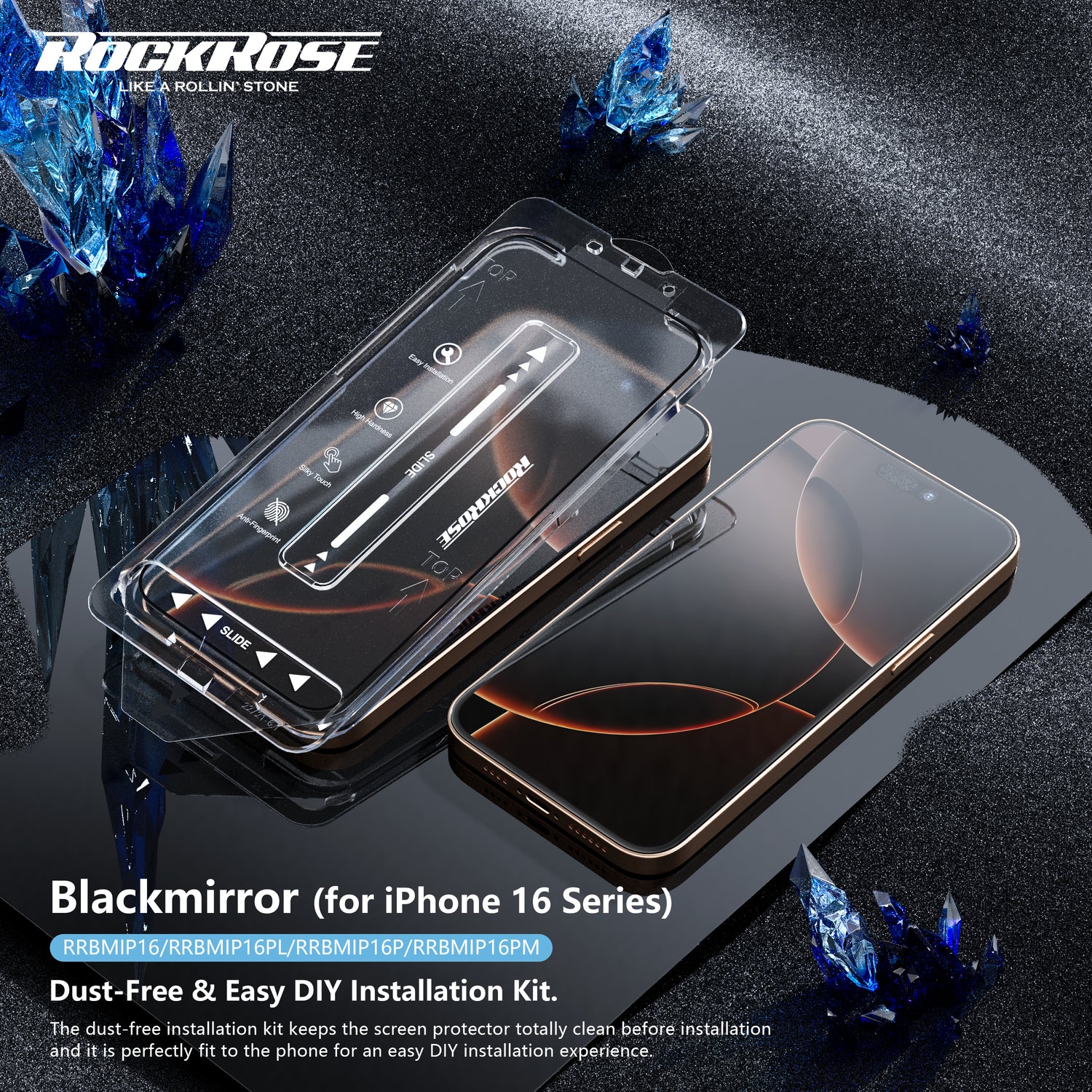 Rockrose Blackmirror iPhone 16 Series 2 Pack Premium Tempered Glass Screen Protector with Dust-free Easy DIY Installation kit
