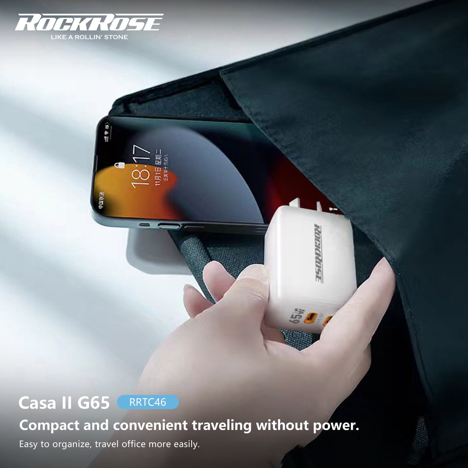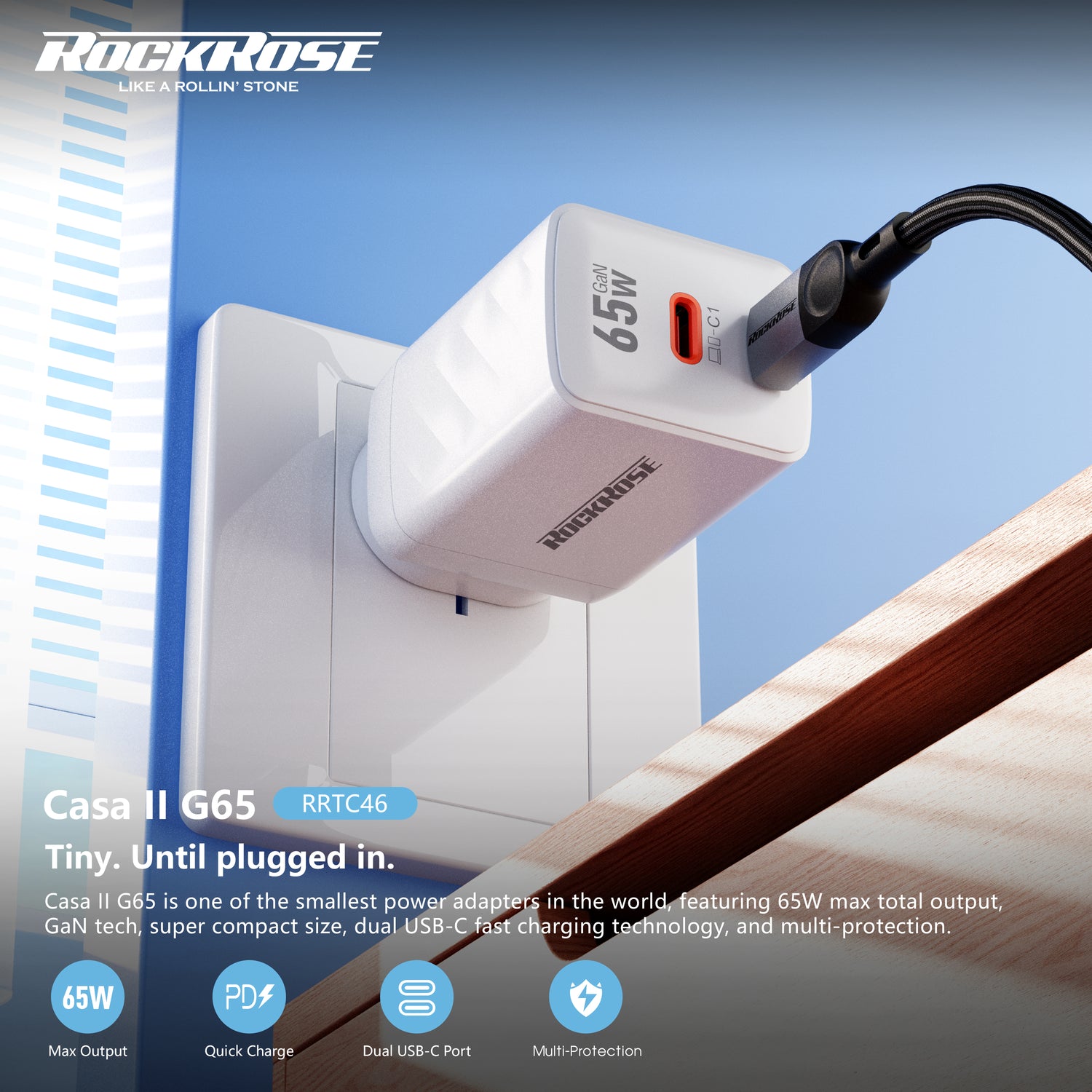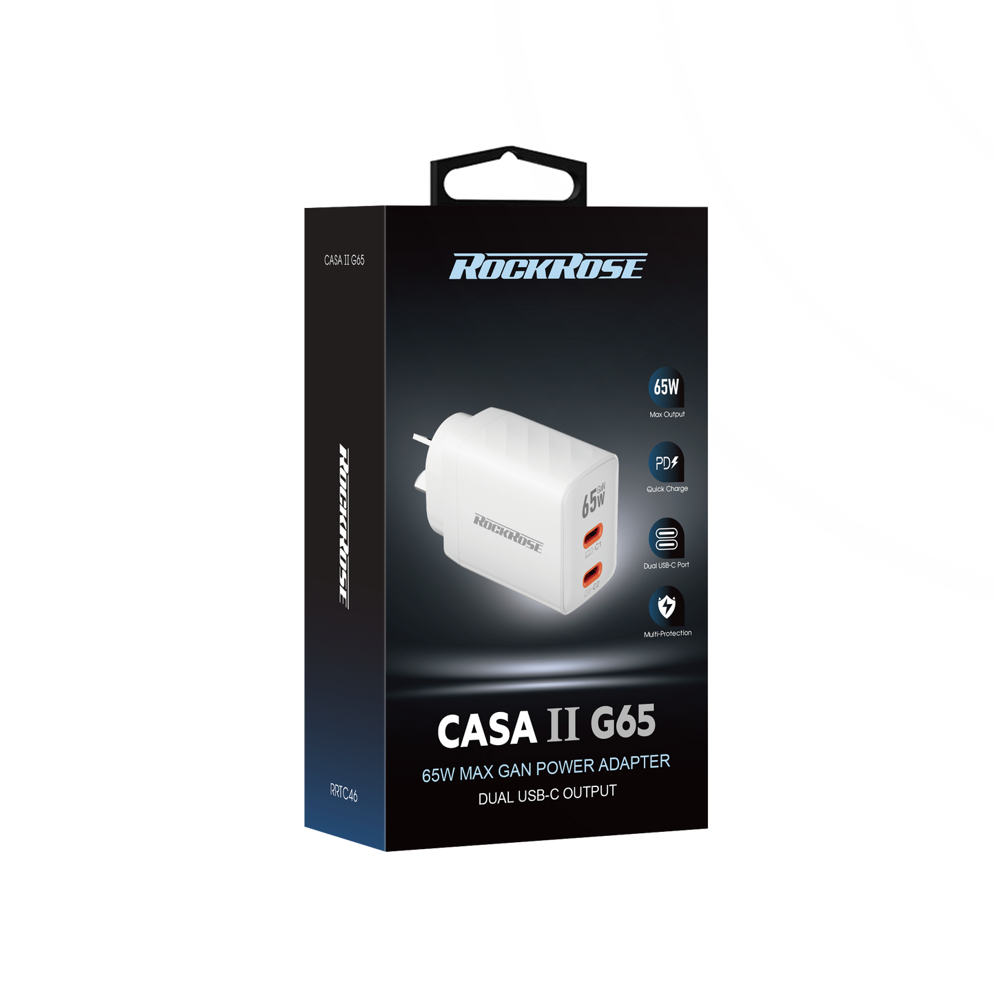 Rockrose Casa II G65 65W Dual USB-C Port GaN Power Adapter