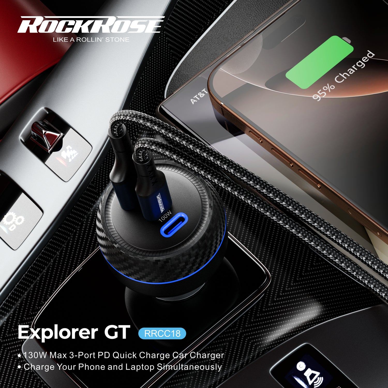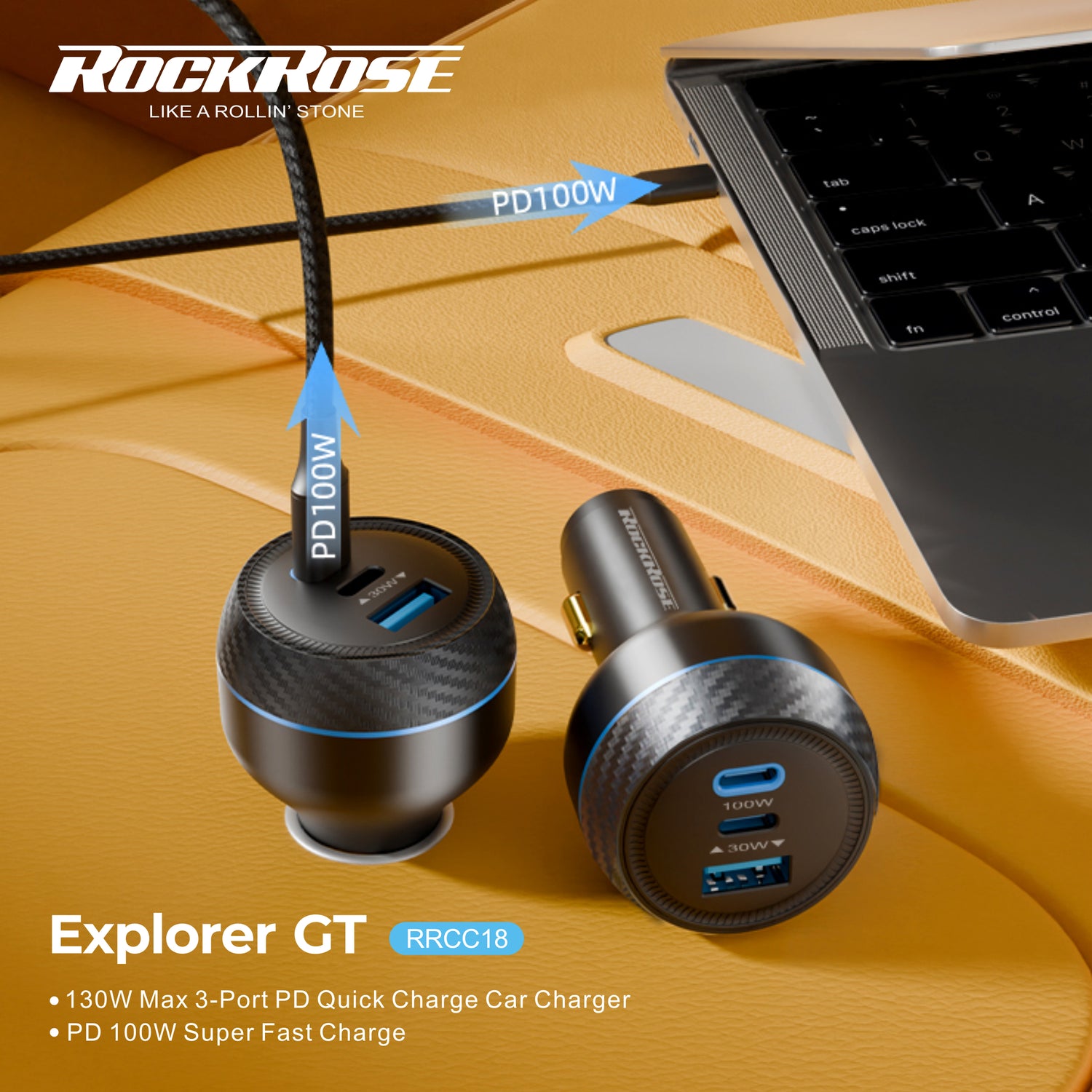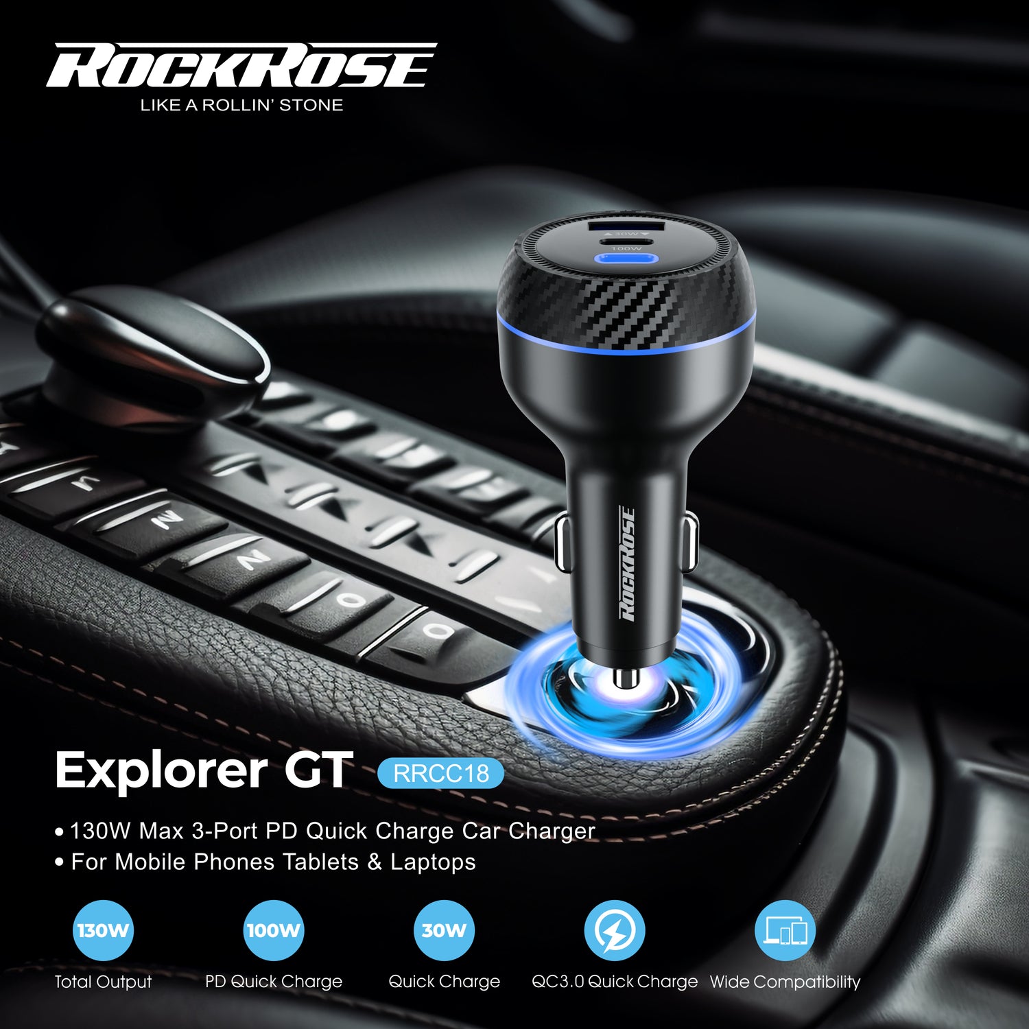 Rockrose Explorer GT 130W Max 3-Port PD Quick Charge Car Charger