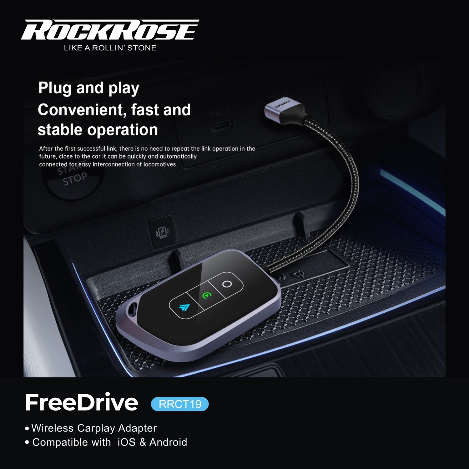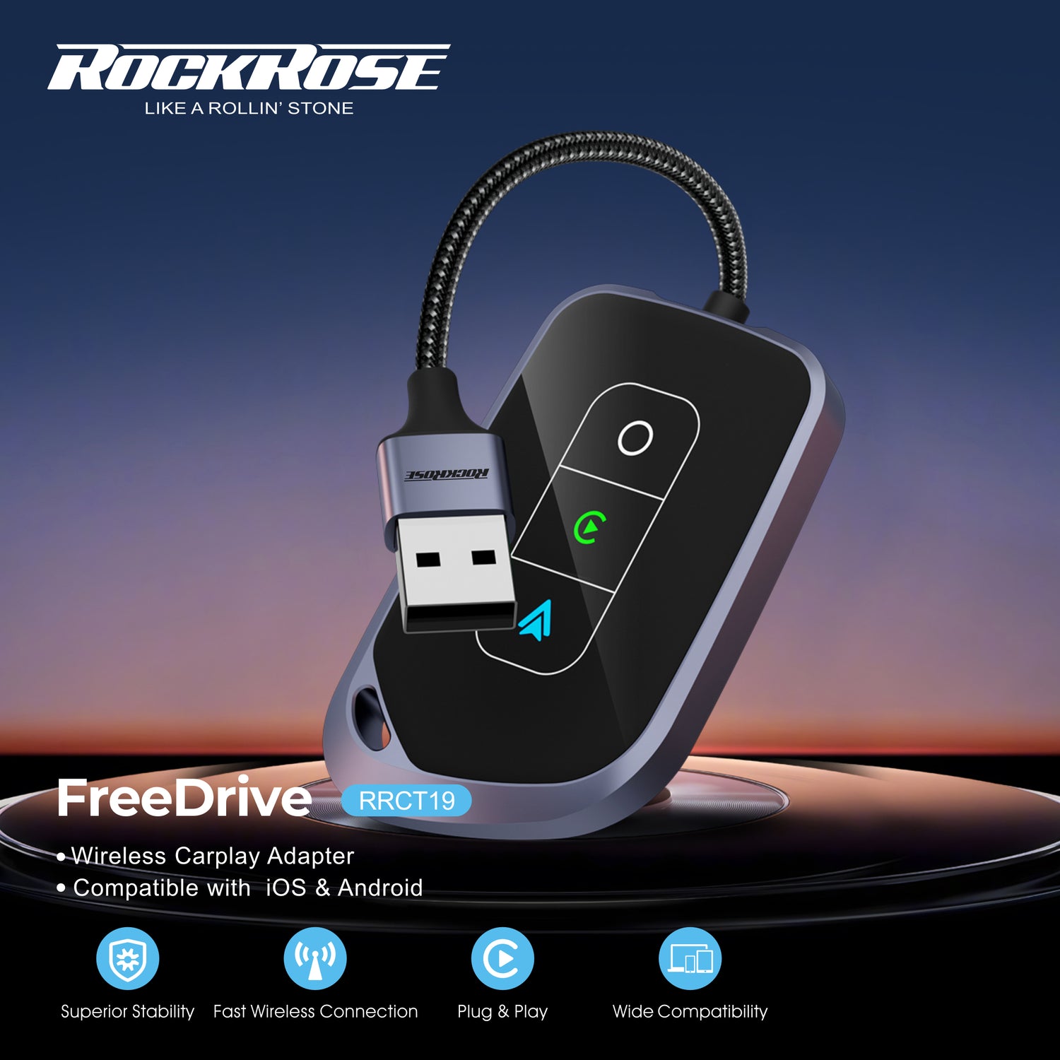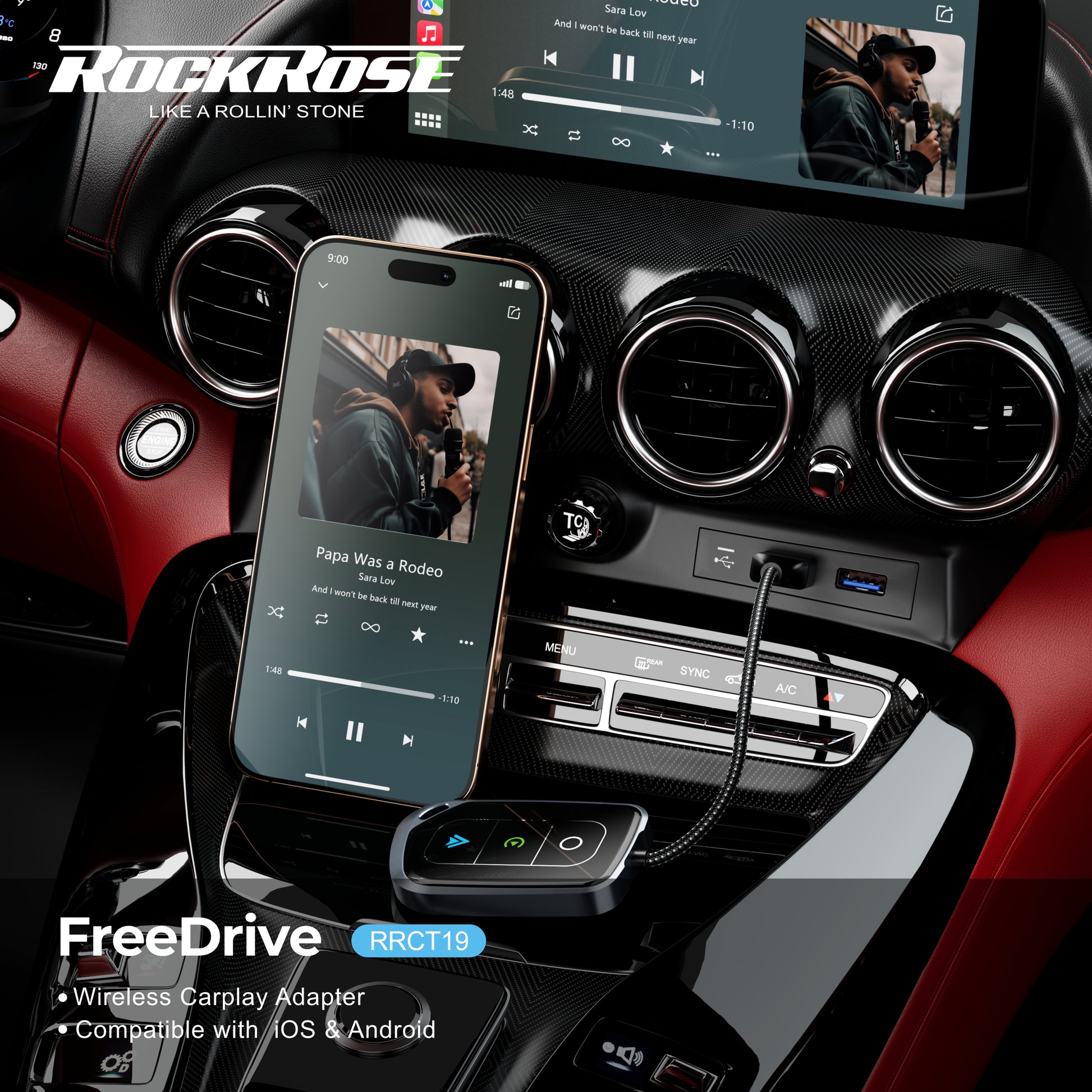 Rockrose FreeDrive Wireless Carplay Adapter Compatible with iOS & Android