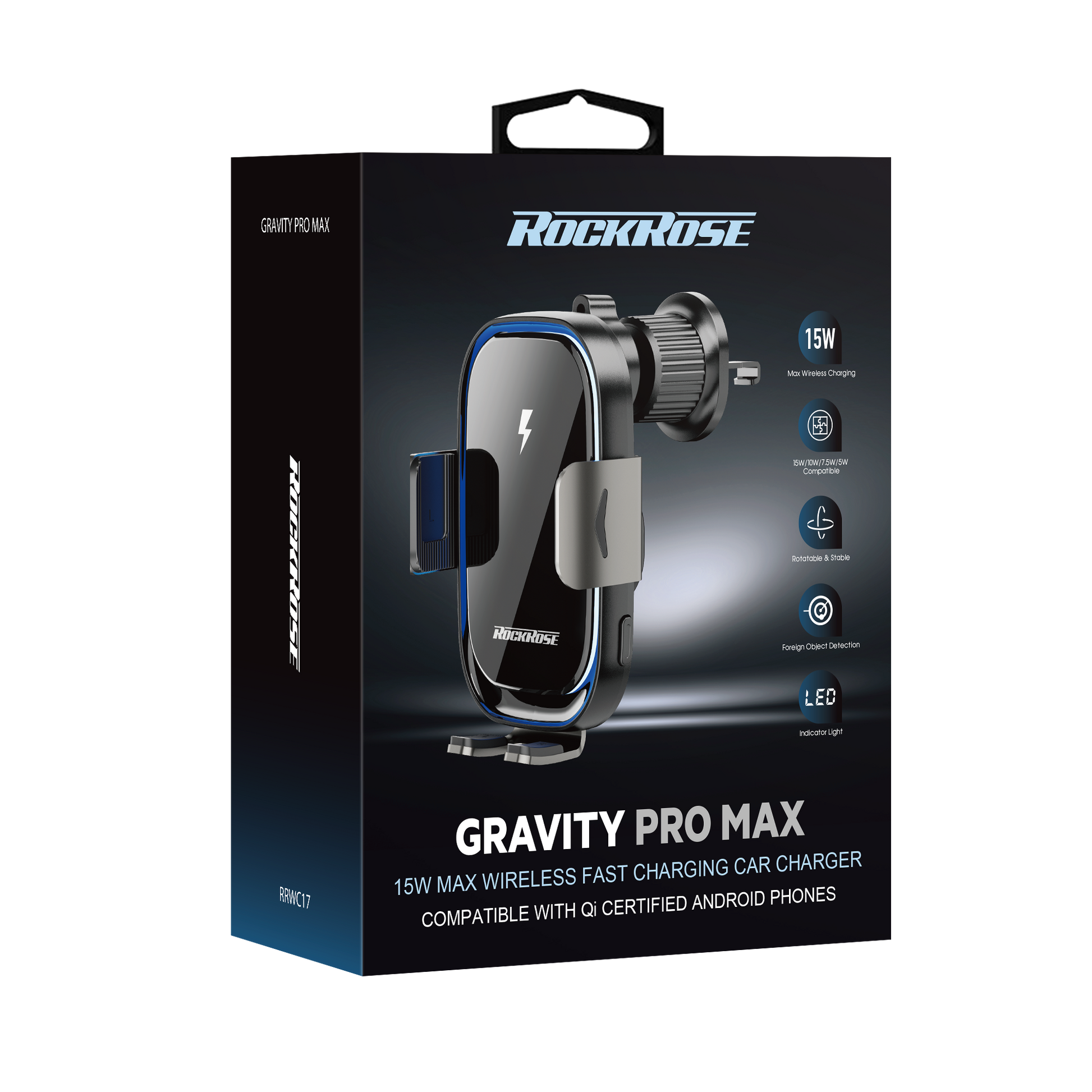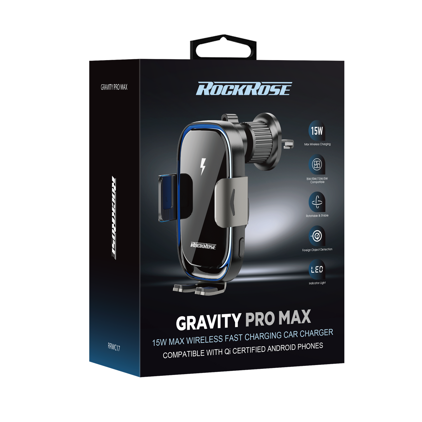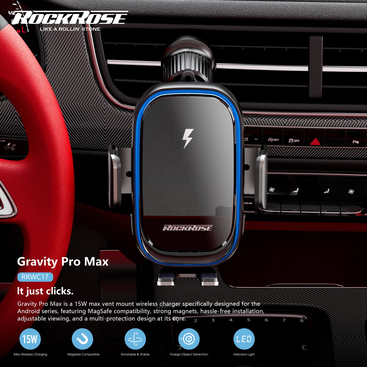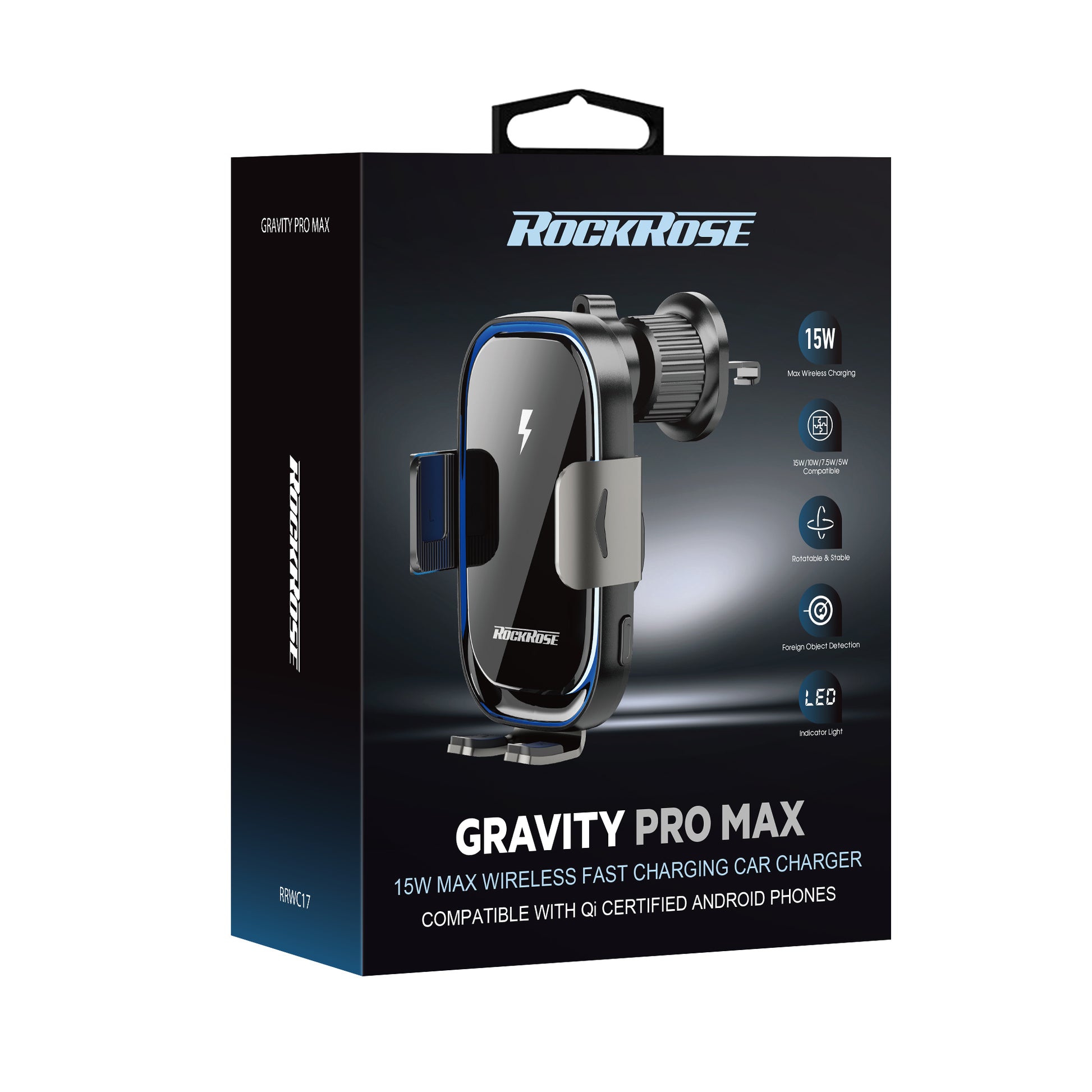 Rockrose Gravity Pro Max 15W Wireless Car Charger with Air Vent Stand For Qi Certified Android Phones