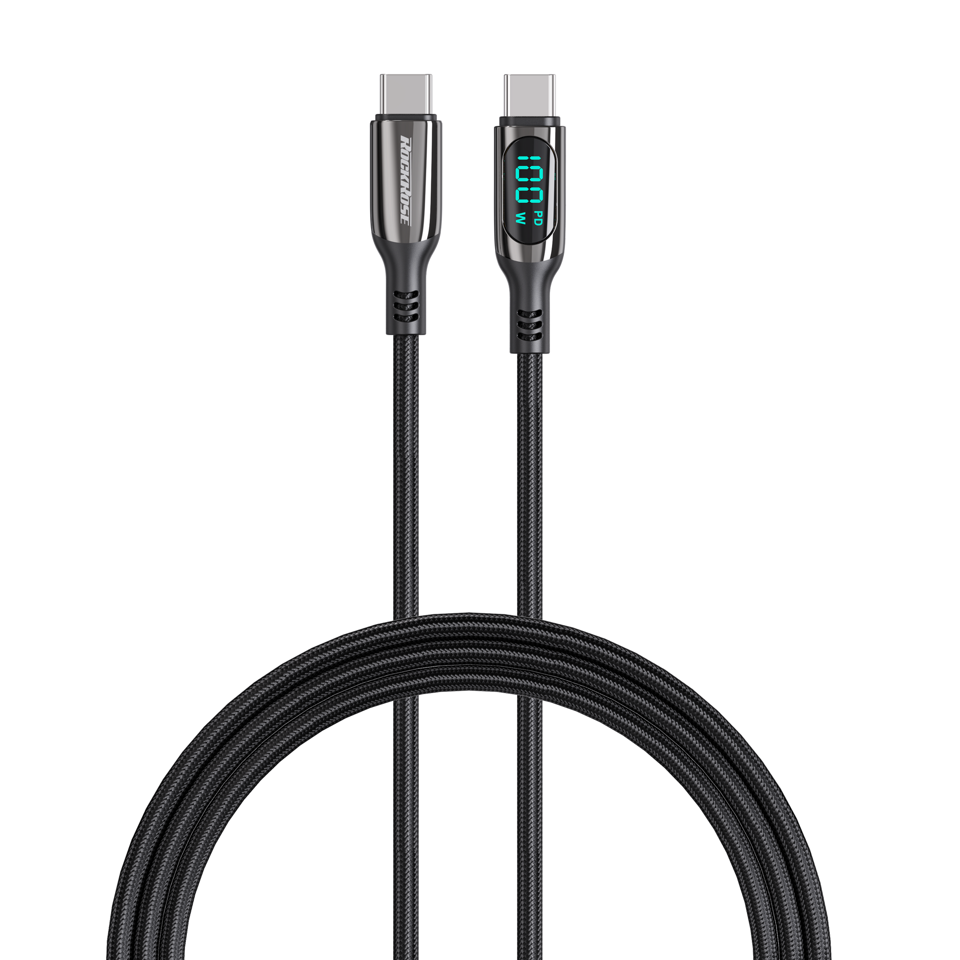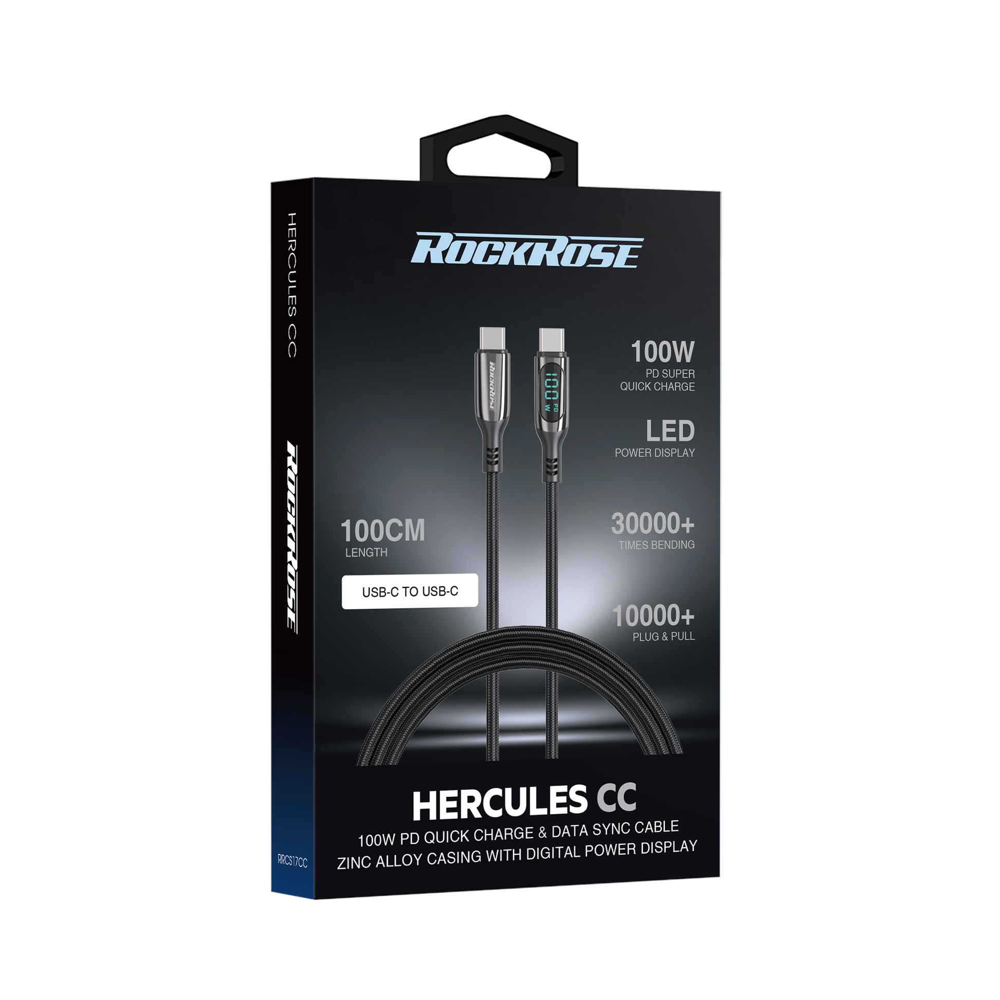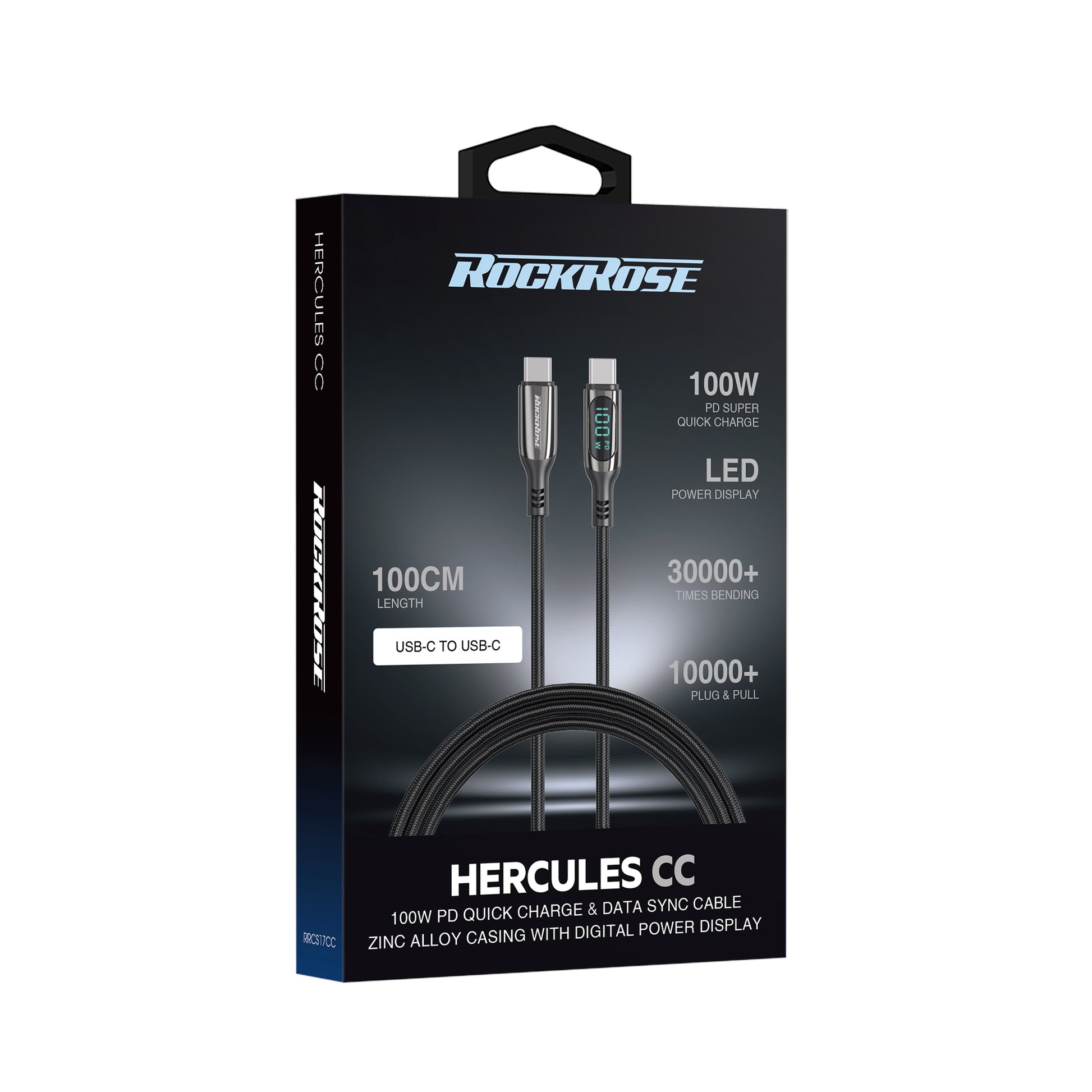 Rockrose Hercules CC Transparent 100W Fast Charging Cable with Digital Power Display