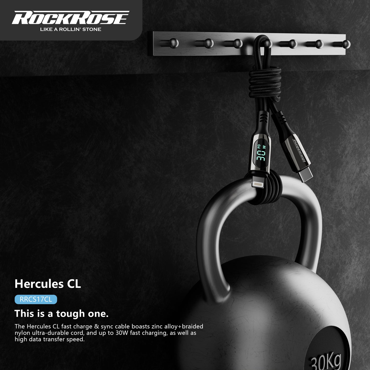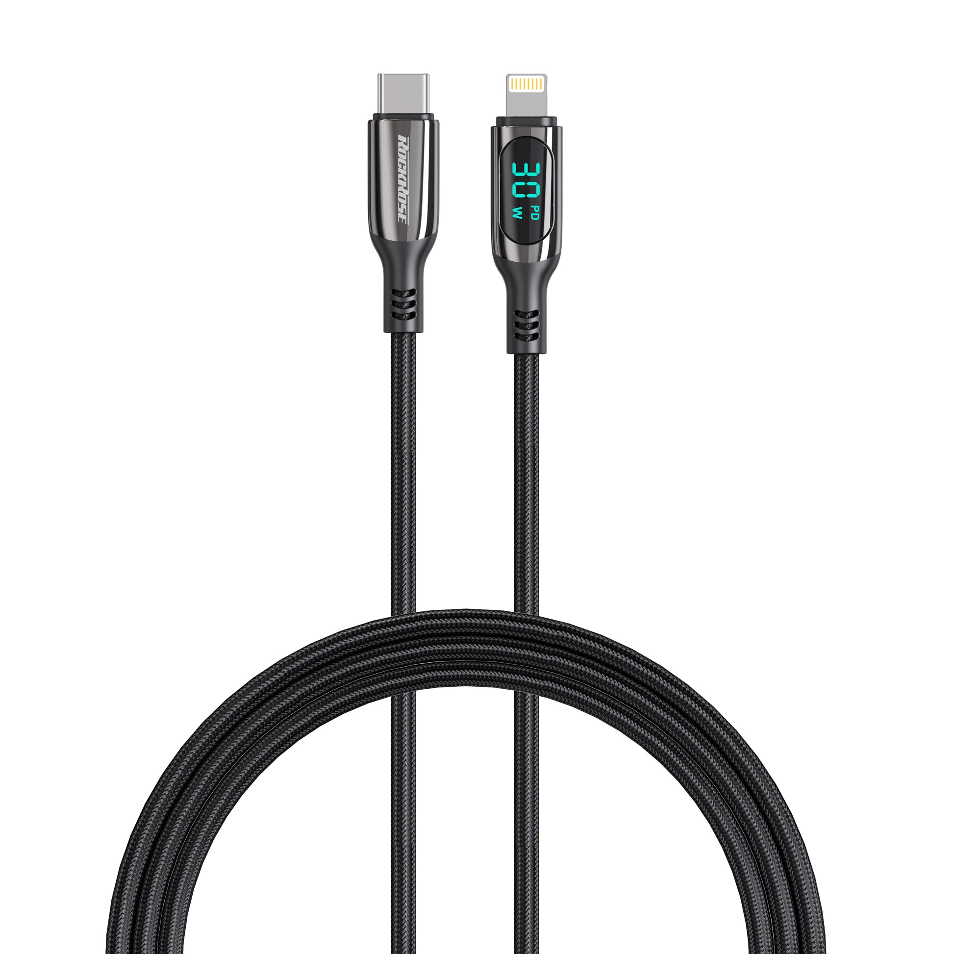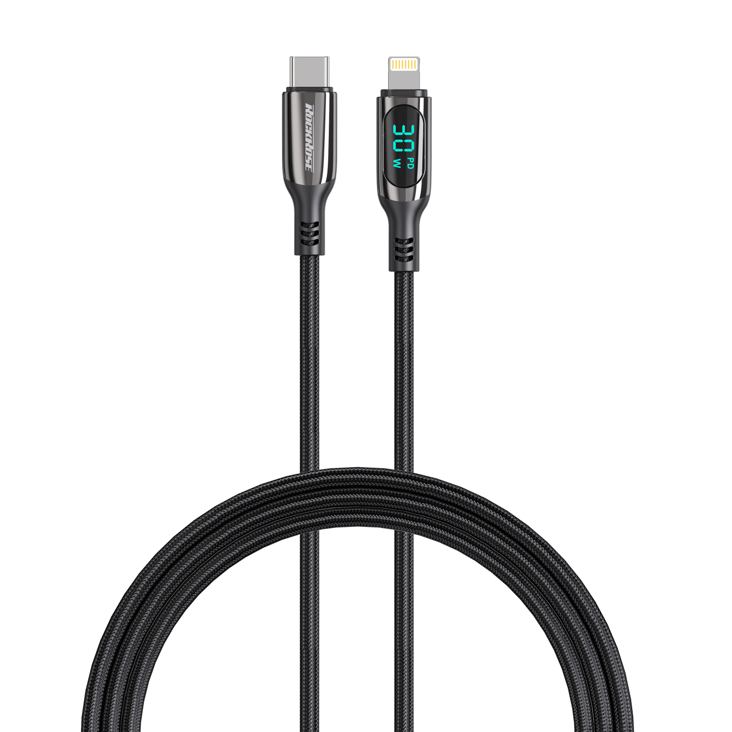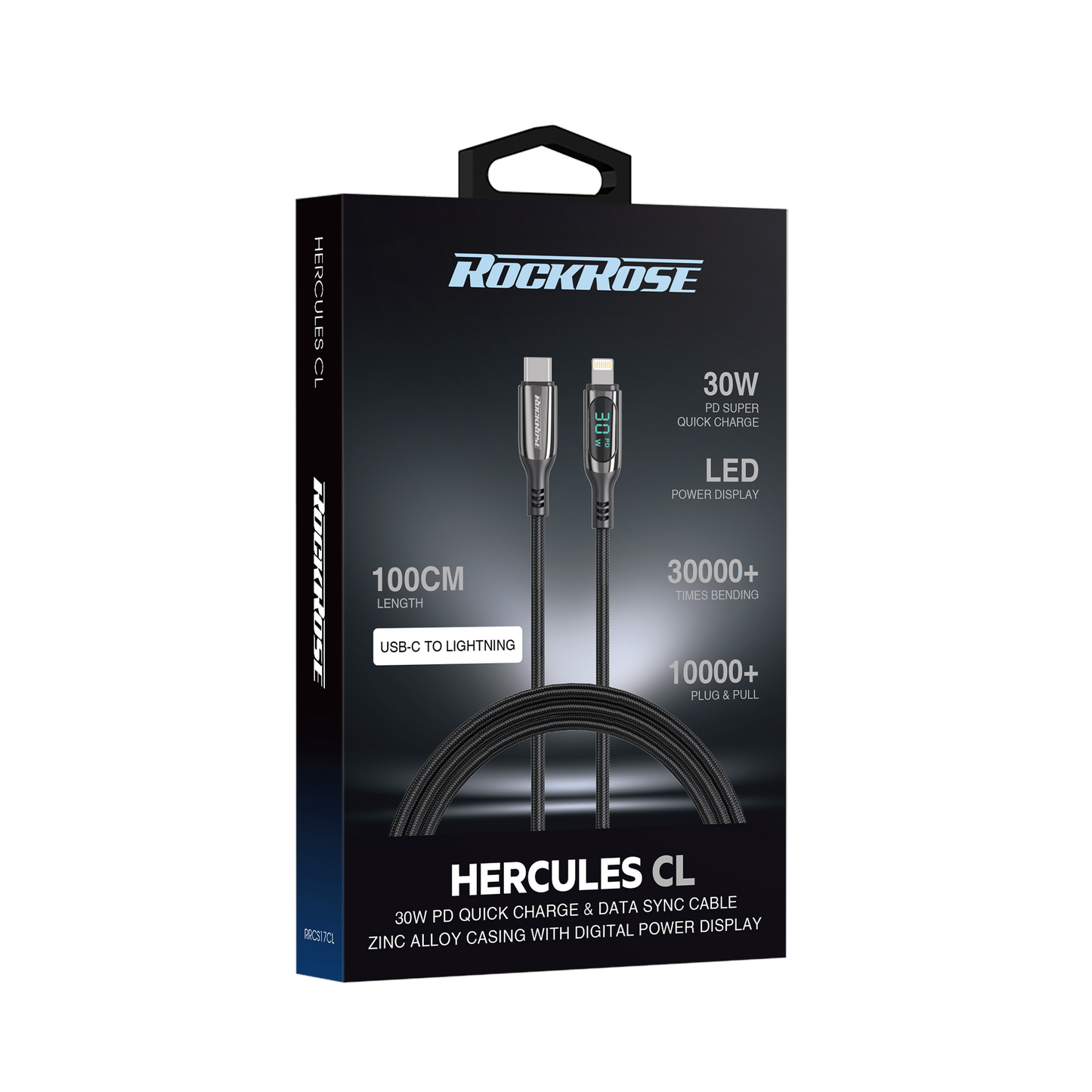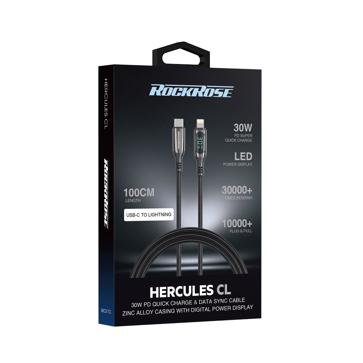Rockrose Hercules CL Transparent 30W Fast Charging Cable with Digital Power Display