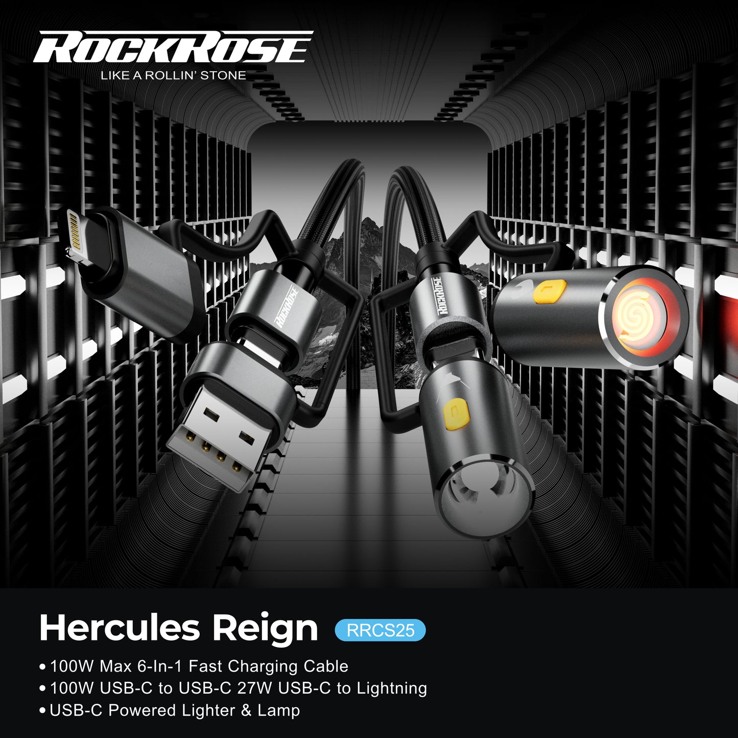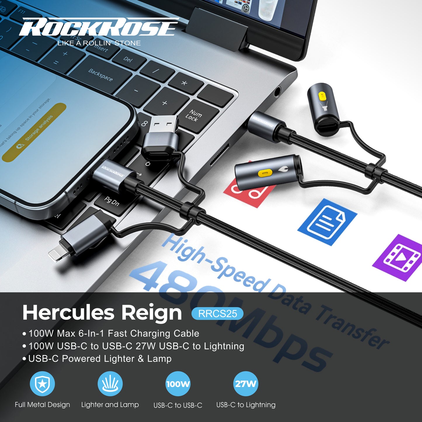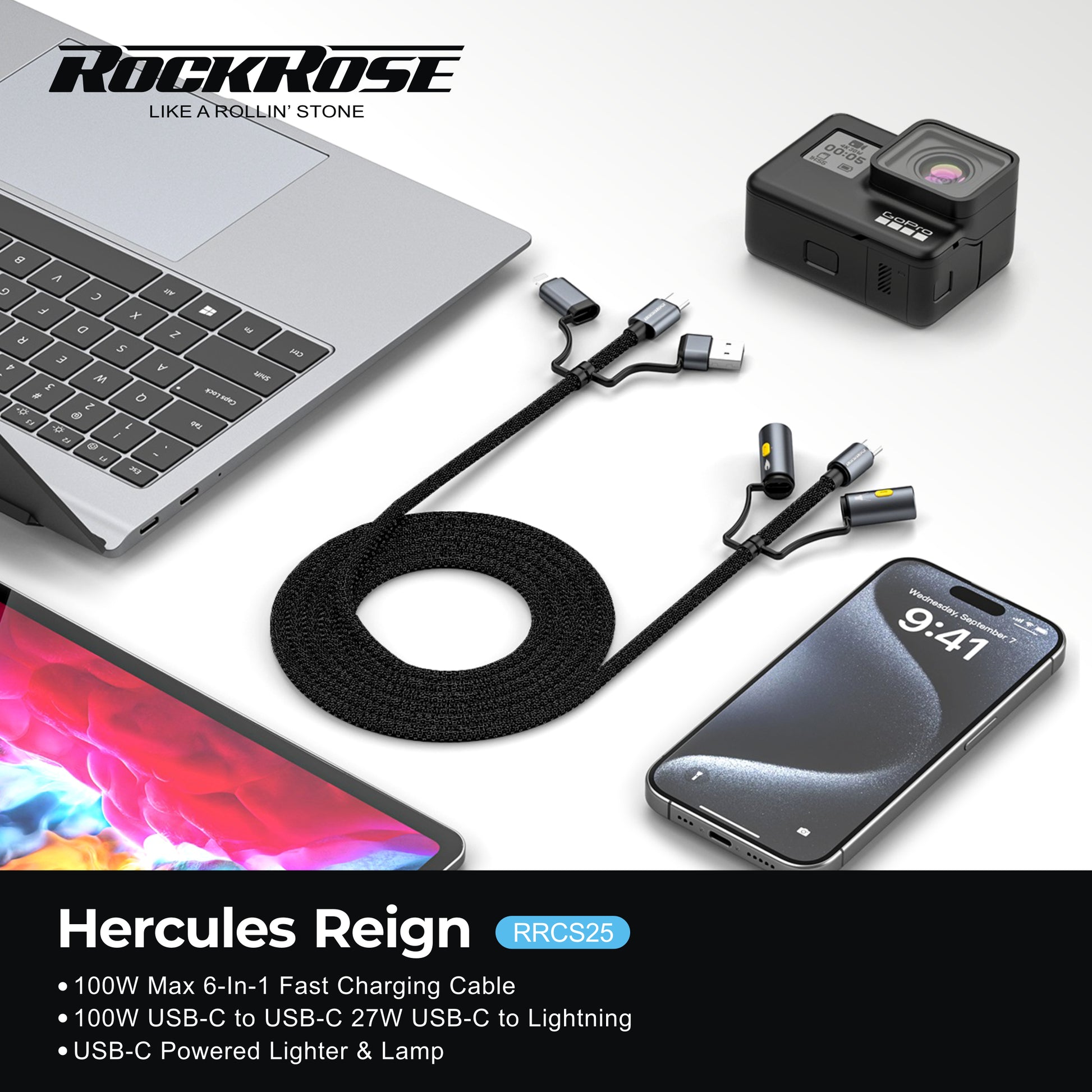 Rockrose Hercules Reign 100W Max 6-In-1 Fast Charging Cable