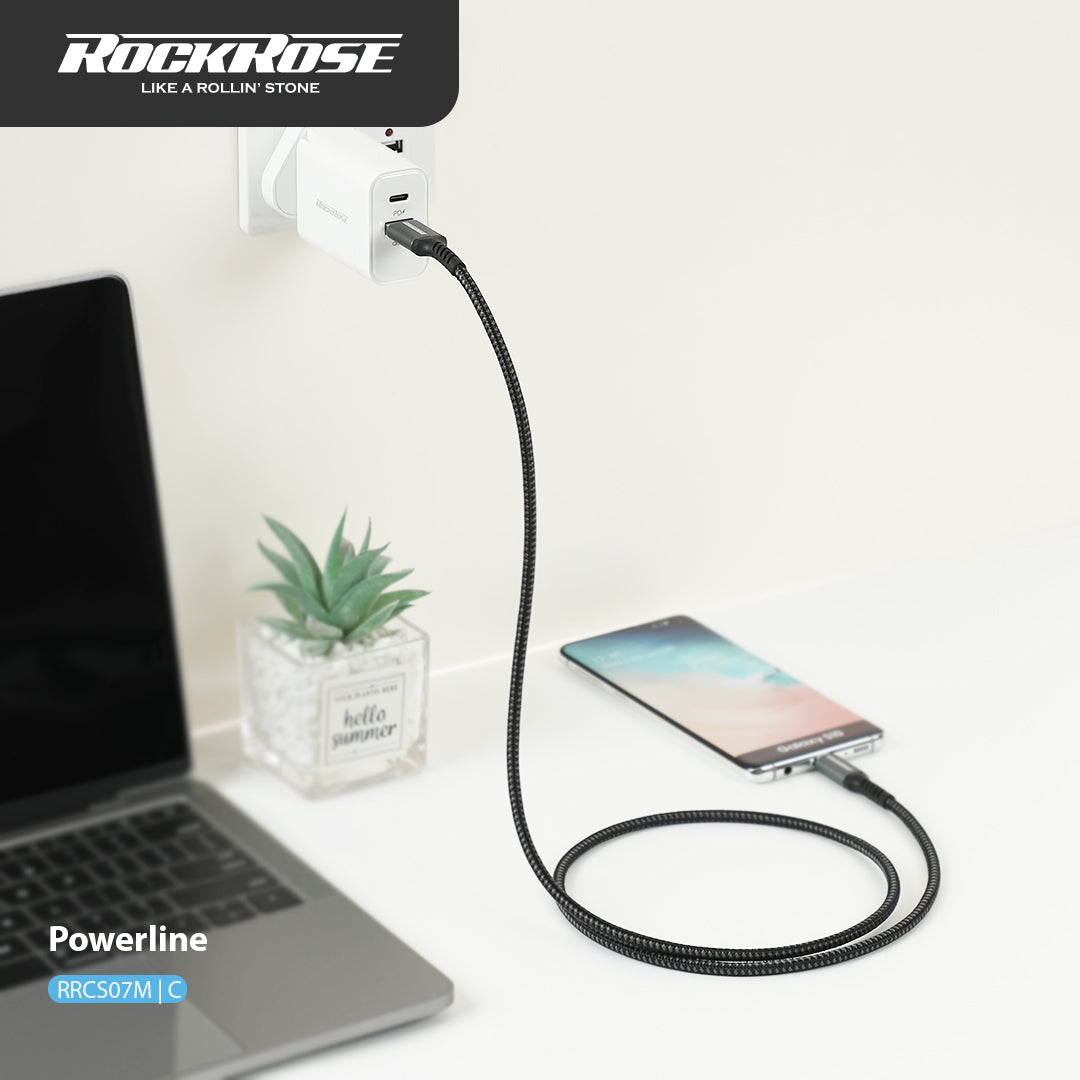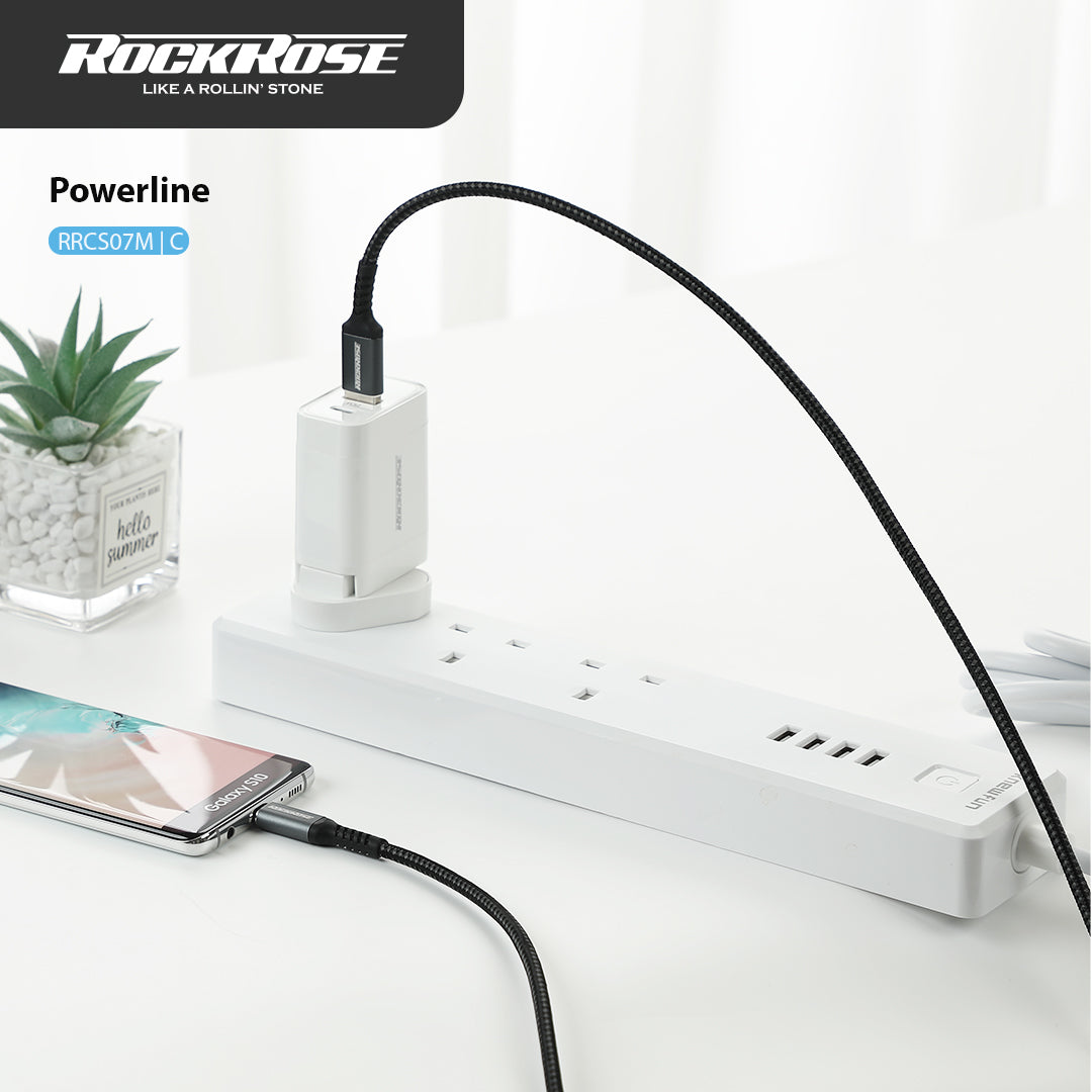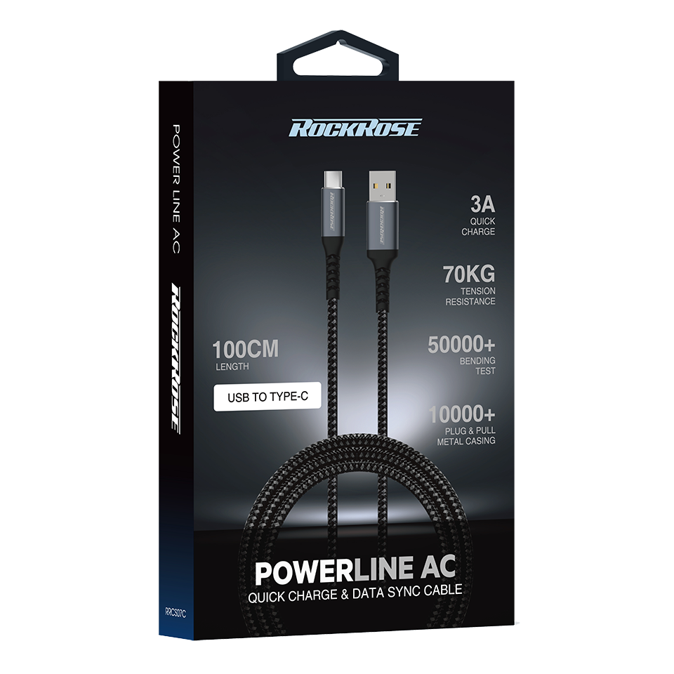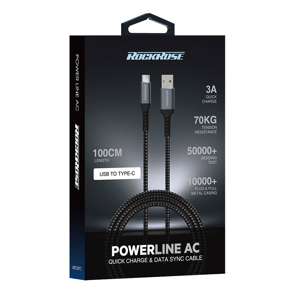 Rockrose Powerline AC 3A 1M USB-C Fast Charge & Data Sync Cable