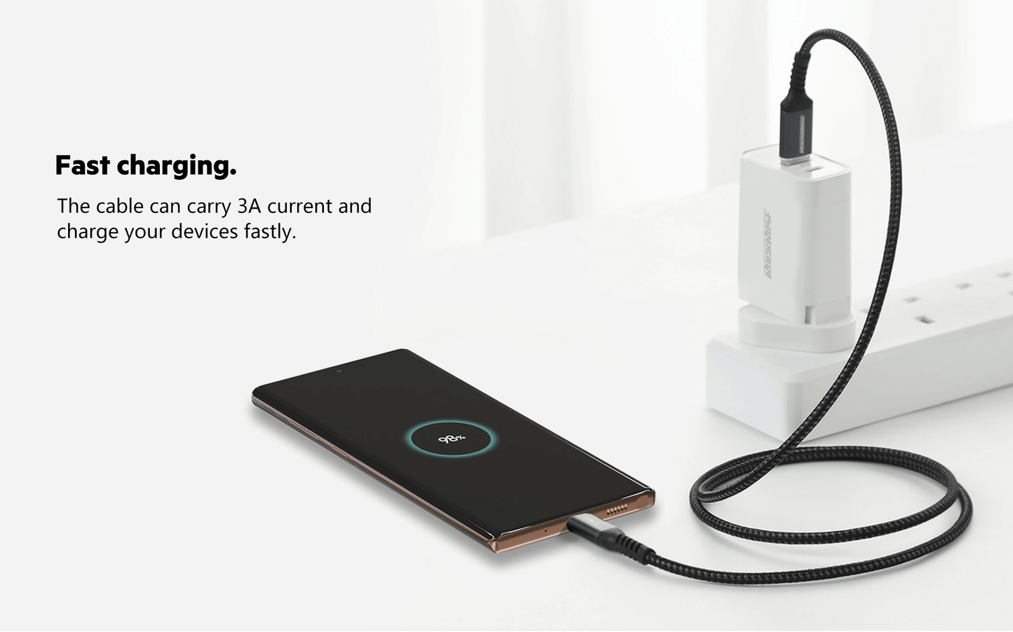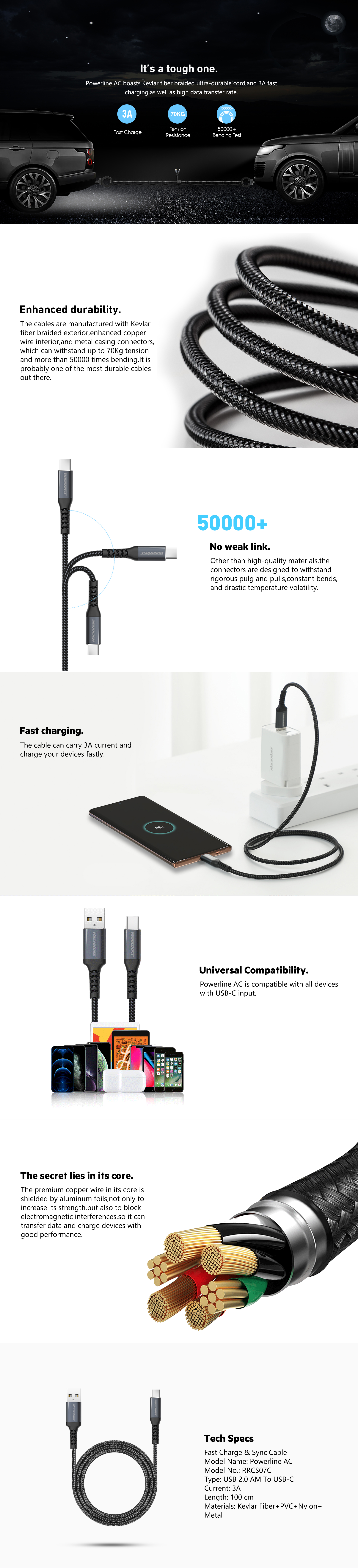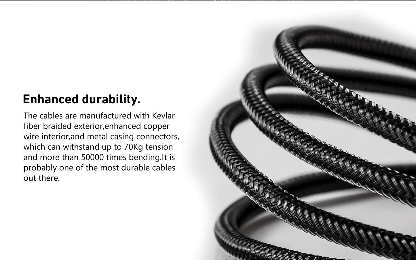 | *3A Quick Charge *USB-C *100CM Length *Material: Kevlar Fiber + PVC + Nylon + Metal |