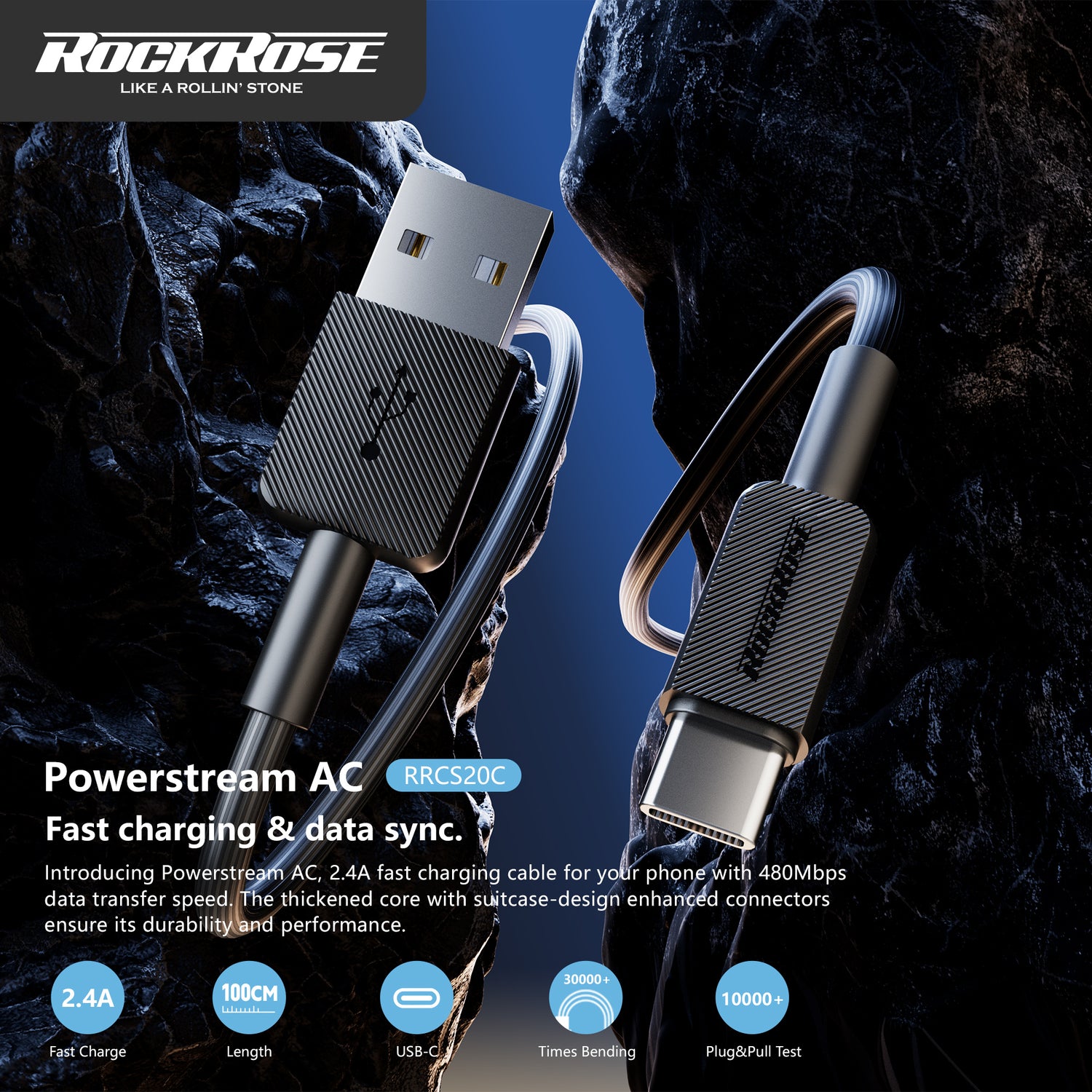 Rockrose Powerstream AC 2.4A 1M USB-C Cable