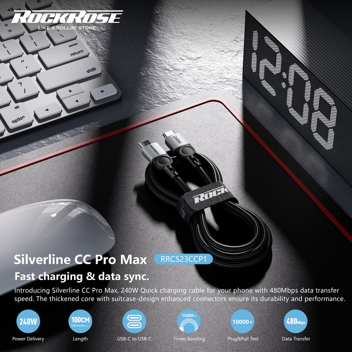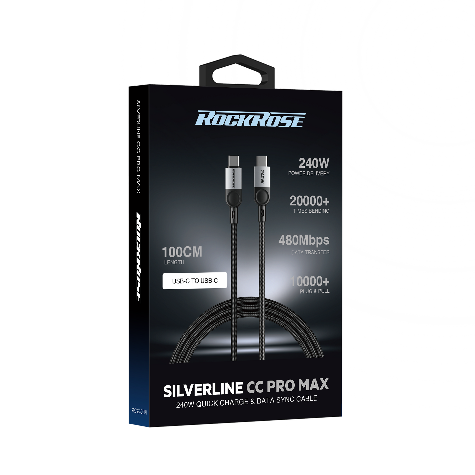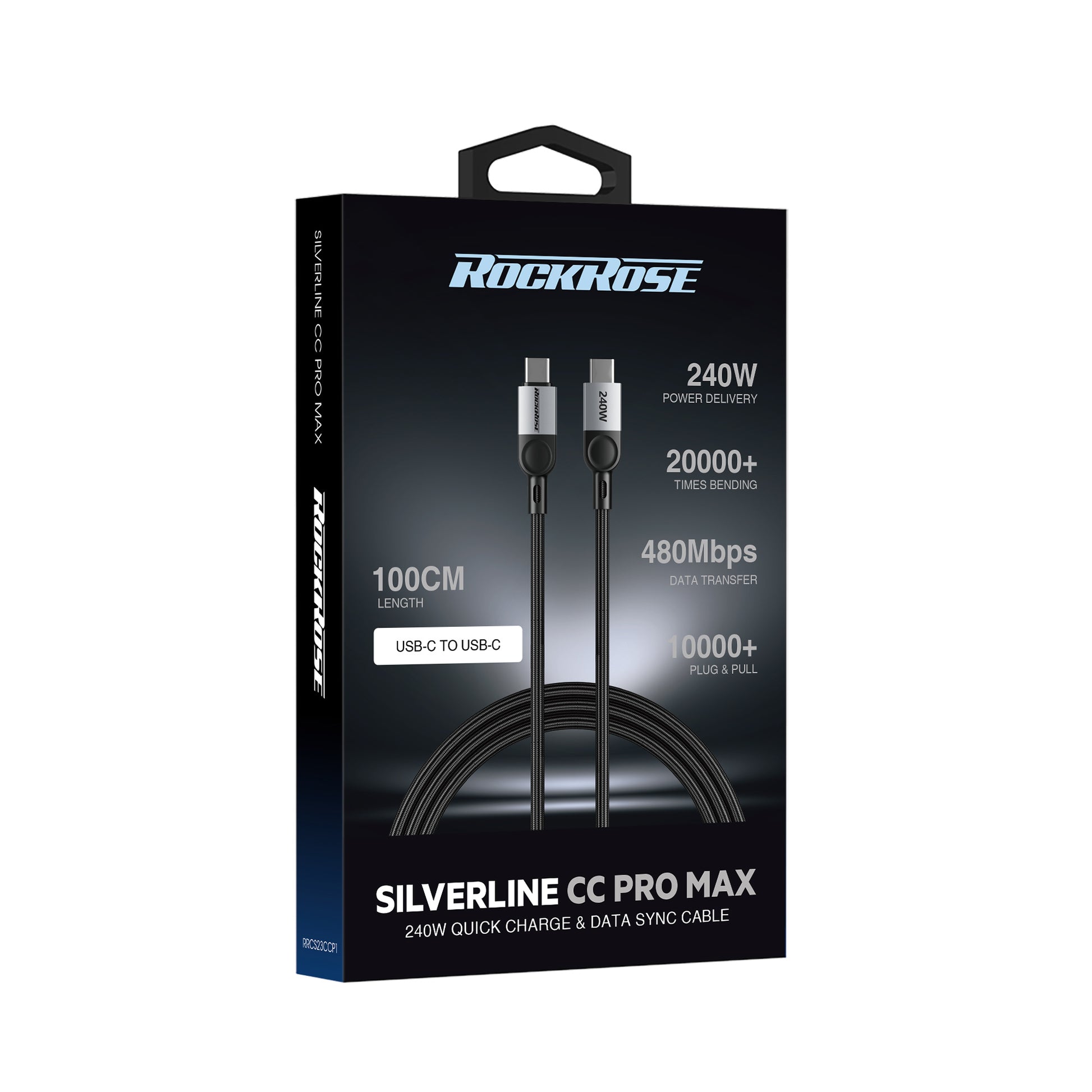 Rockrose Sliverline CC Pro Max 240W PD Quick Charge 1M USB-C to USB-C Fast Charging & Data Sync Cable